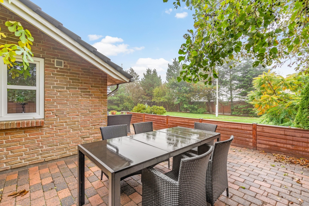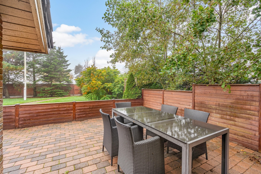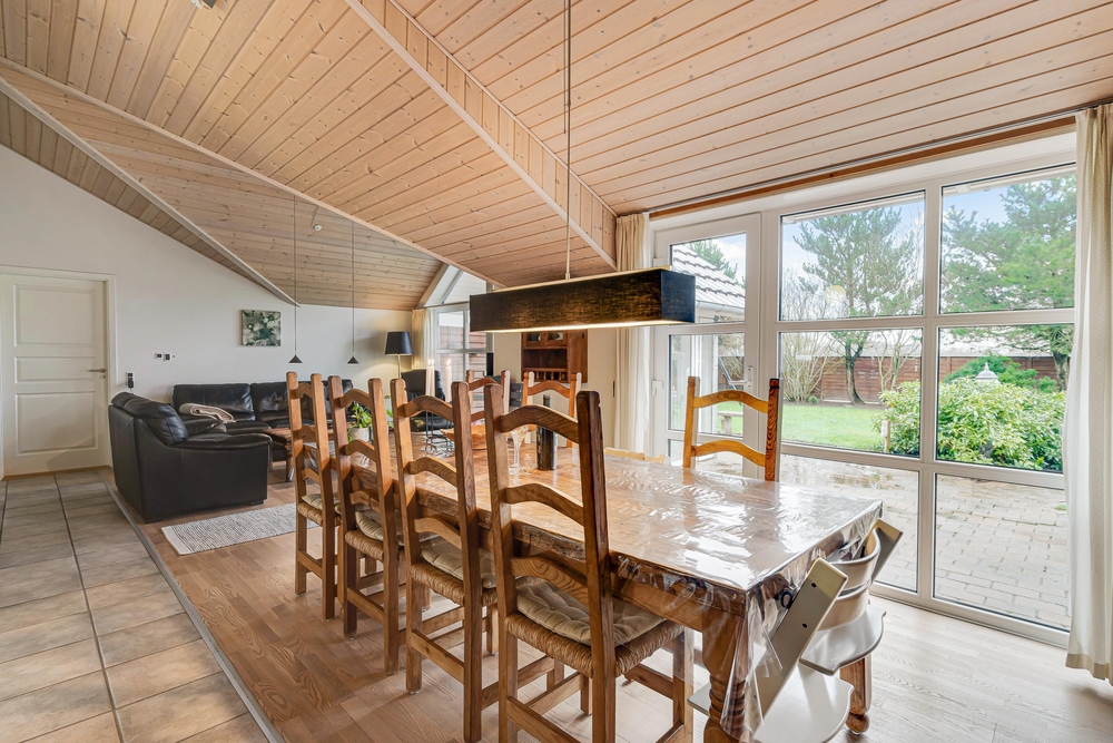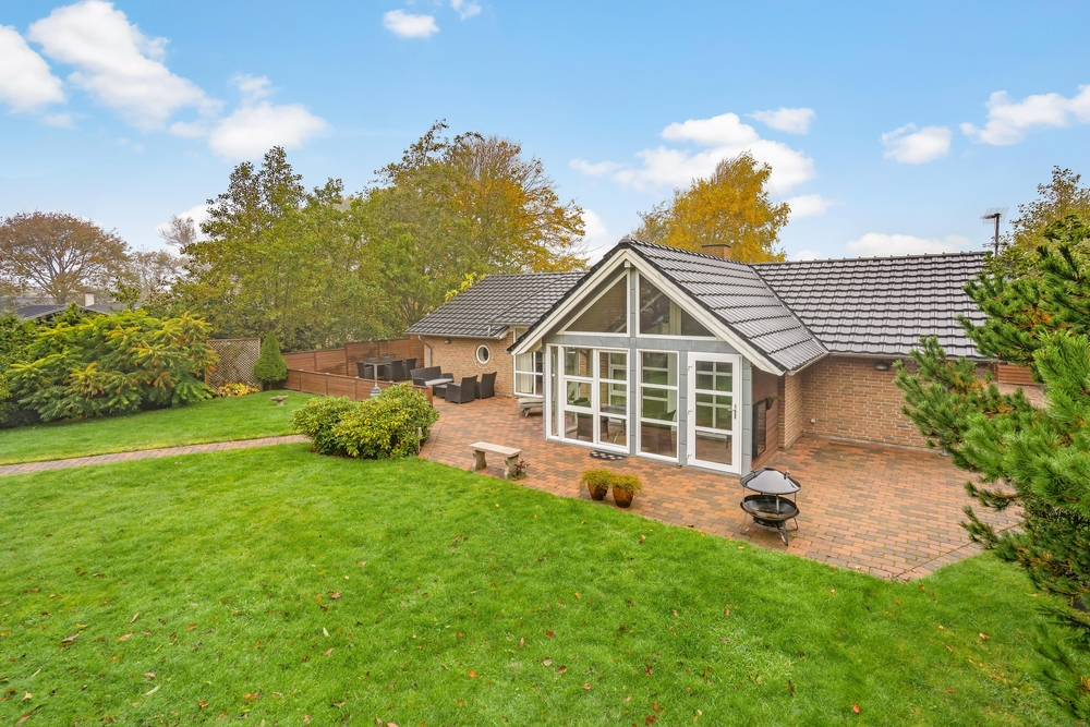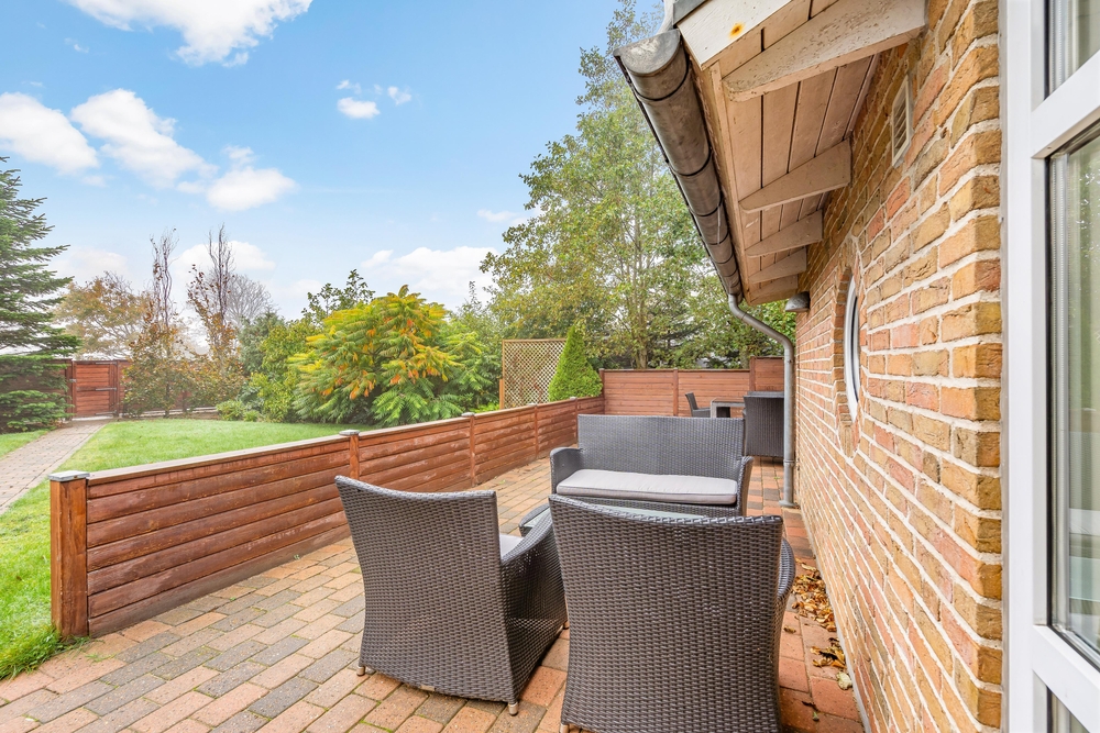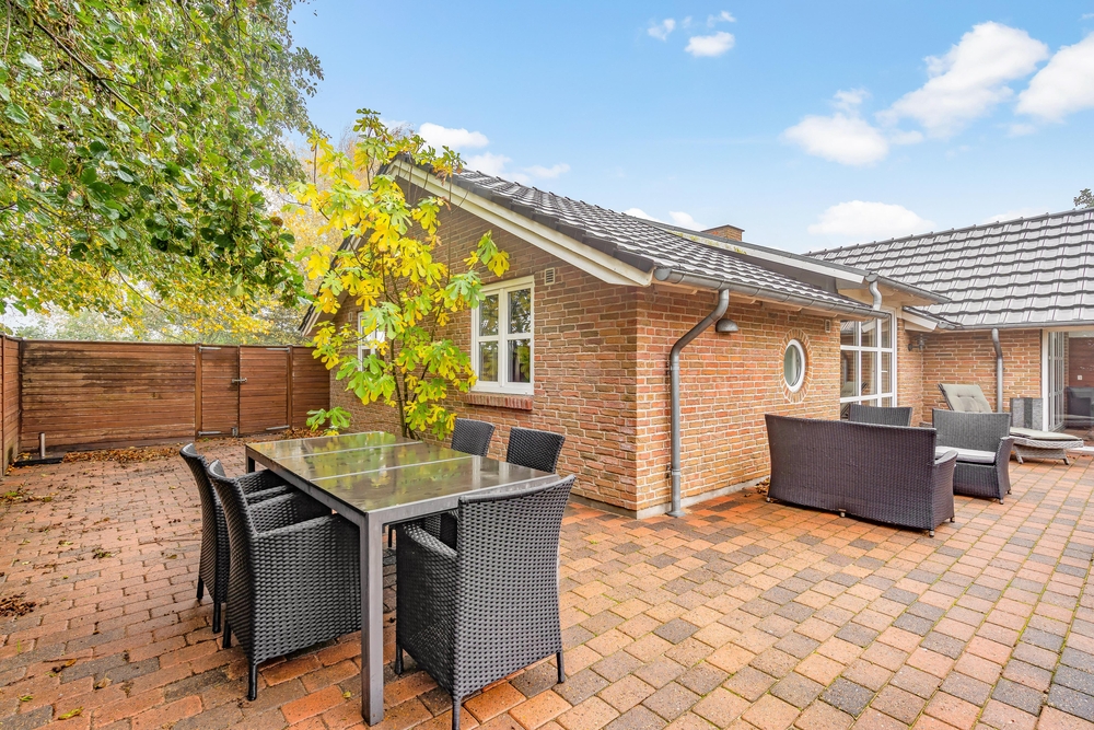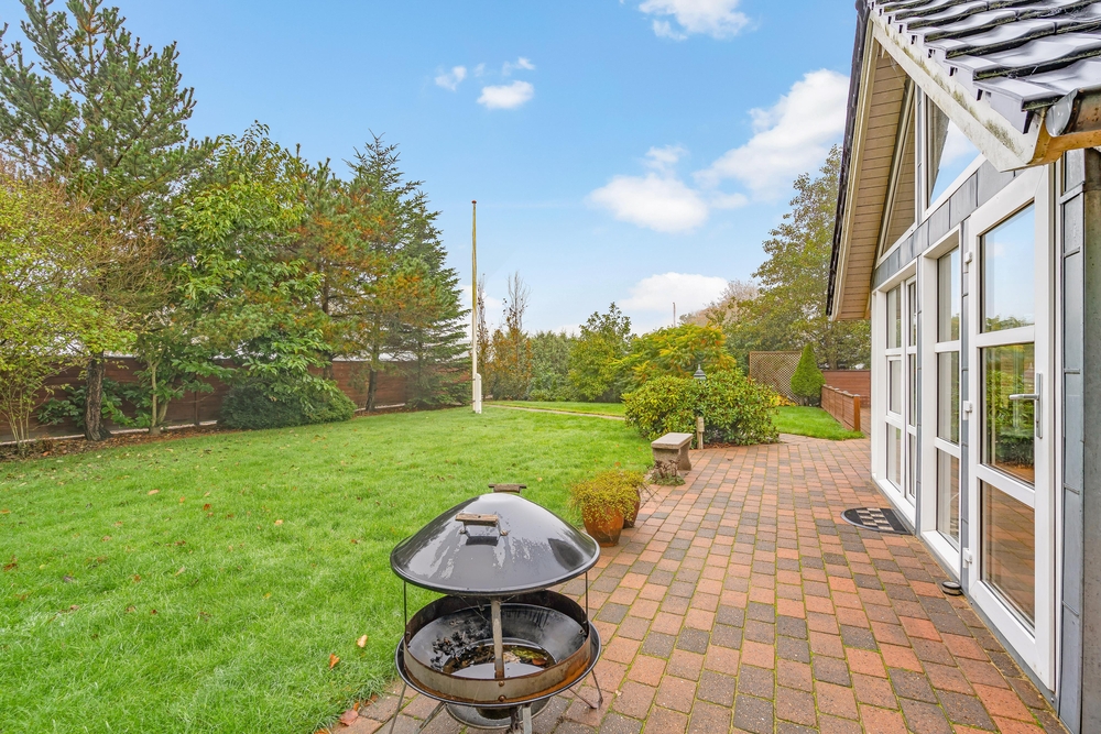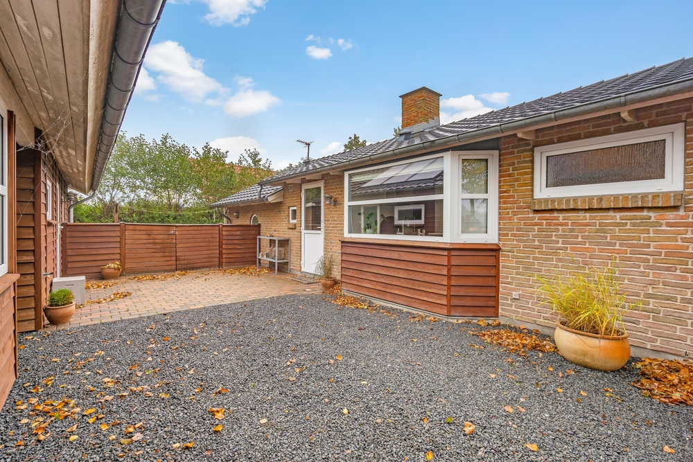 Skulle det ske, at det regner, kan I nyde sommeren fra feriehusets udestue.