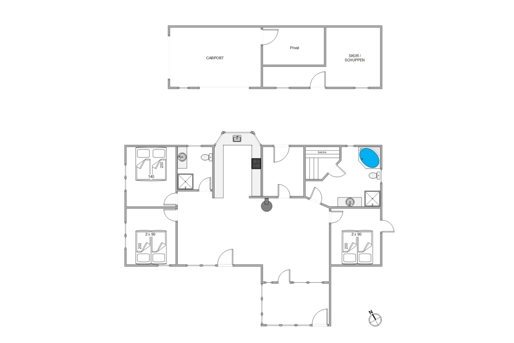 Feriehuset på Lukkebjerg 7B ligger for enden af en lukket vej. Feriehuset, som er til 6 personer, har 3 soveværelser og er udstyret med alt det, I har brug for på jeres ferie. Vil I gerne forkæle kroppen lidt efter en aktiv dag, kan dette gøres i saunaen og spaen, som feriehuset råder over.