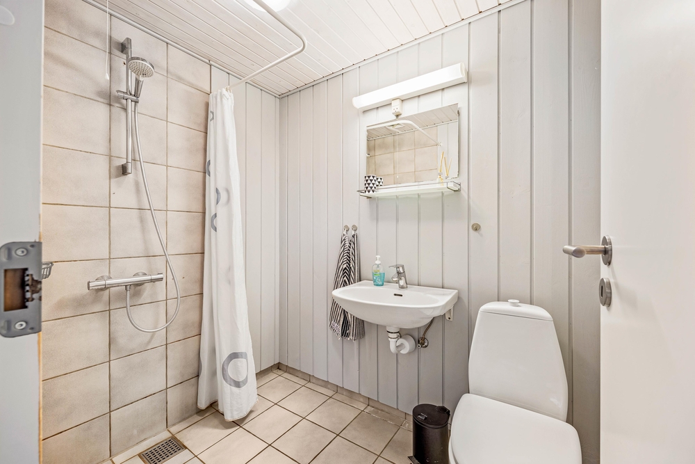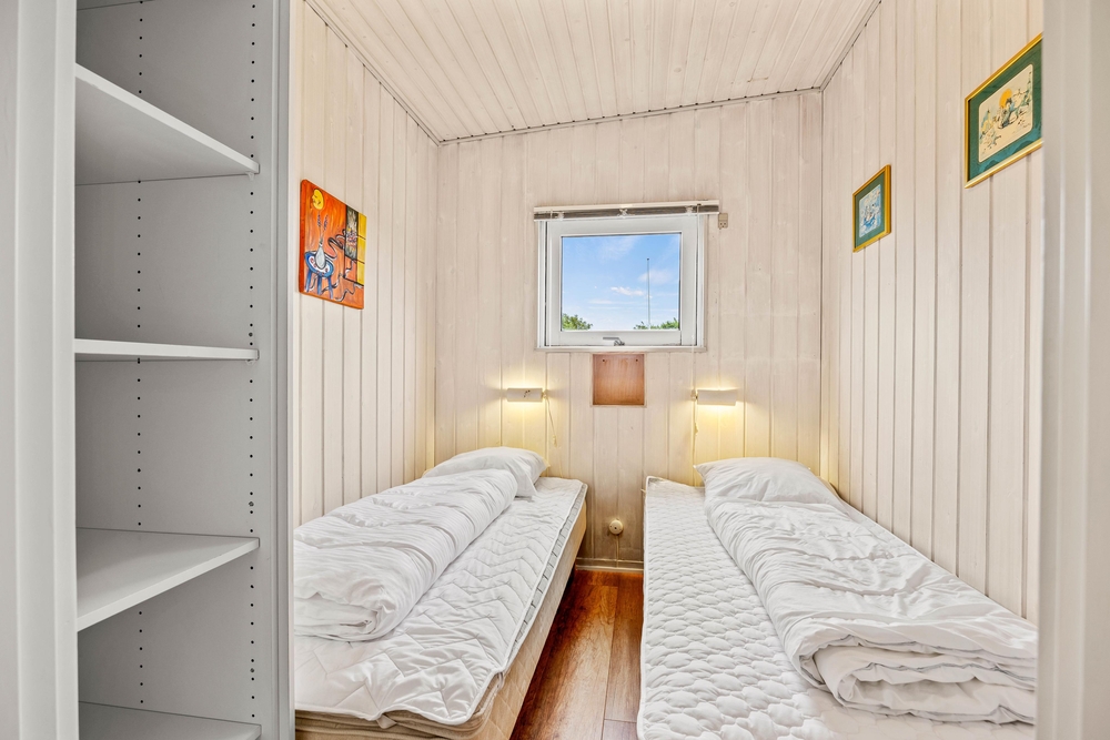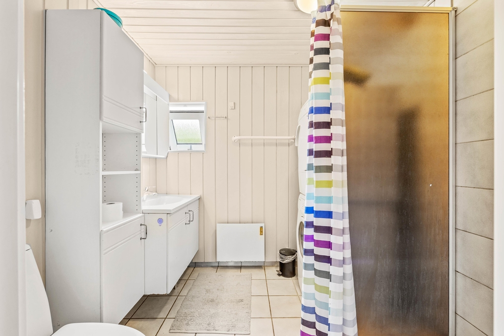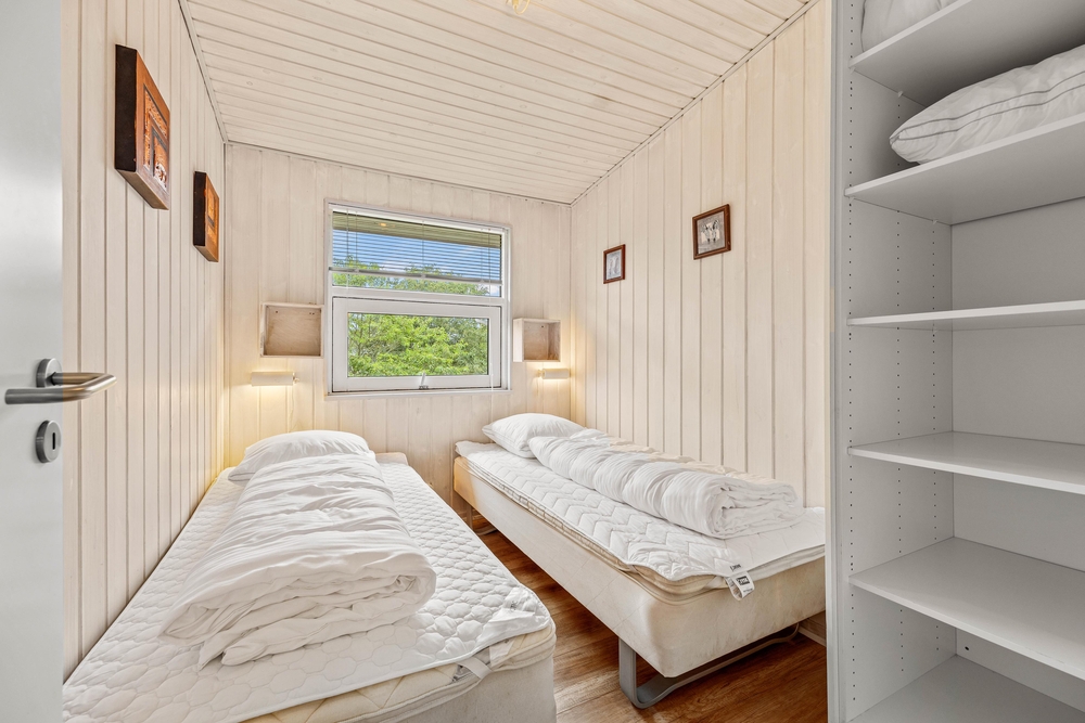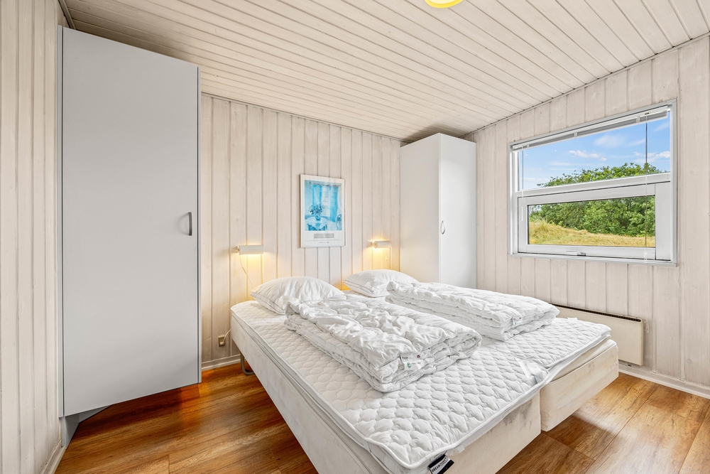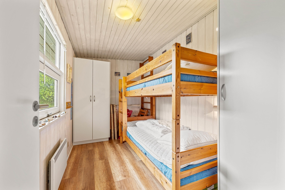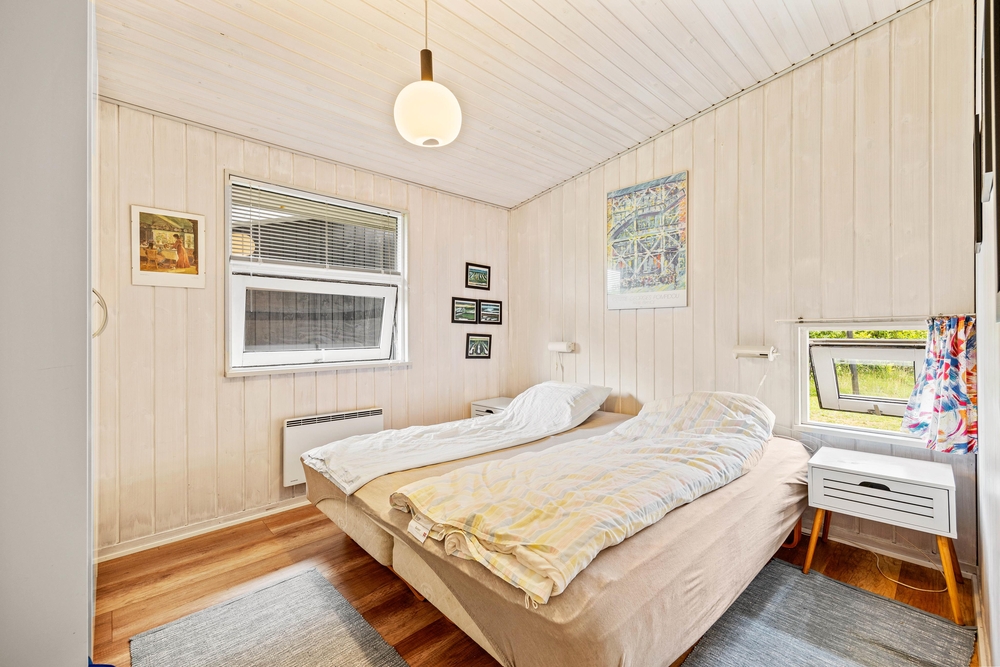 Når I skal samle fornyet energi til den næste feriedage, kan I søge mod et af sommerhusets 5 soverum, der er indrettet med henholdsvis dobbeltsenge, enkeltsenge og en køjeseng. Dertil 2 badeværelser, begge med gulvvarme, hvor der I det ene står vaskemaskine og tørretumbler til rådighed.