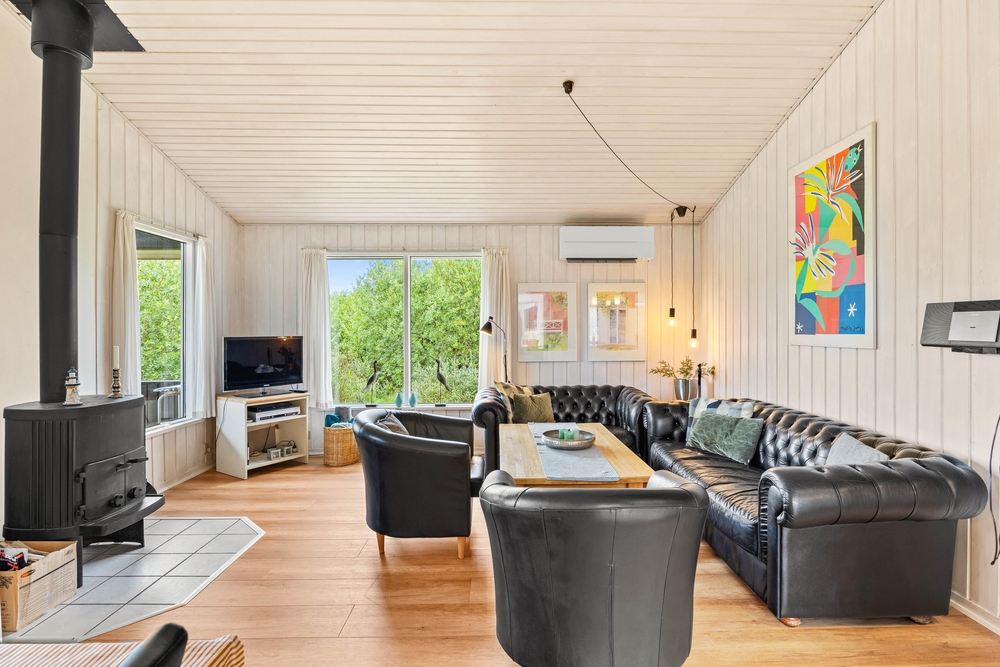 Sommerhuset opvarmes med en energisparende varmepumpe der udover en god temperatur også sørger for et godt indeklima.