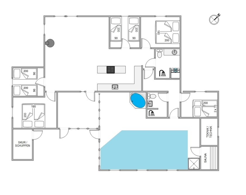 Er I på udkig efter et feriehus til jeres næste ferie, hvor der er rig mulighed for at blive forkælet med masser af afslapning, så er feriehuset på Lyngvej 54 i Rindby det oplagte valg. I feriehuset, der har plads til 8 personer og 2 hunde, er der masser af underholdning for store og små ? her er der nemlig både pool, spa og sauna.