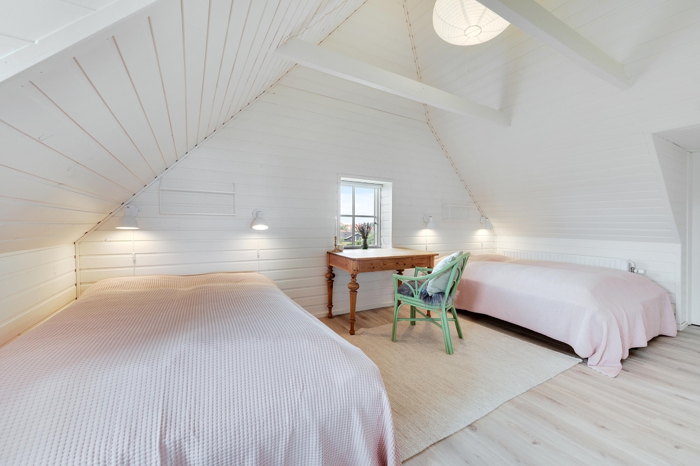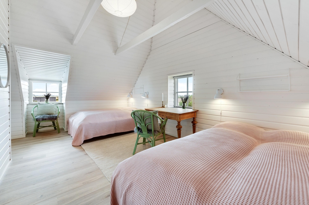I alle værelserne er der et dejligt lysindfald og udsigt til den flotte naturgrund. Skulle I få besøg af to ekstra gæster på jeres ferie, kan der også redes op til dem, sådan at de kan overnatte og nyde udsigten i morgensolen sammen med jer.