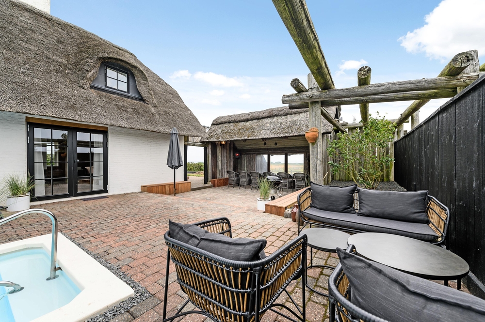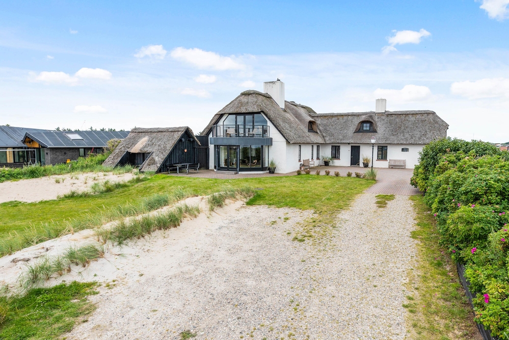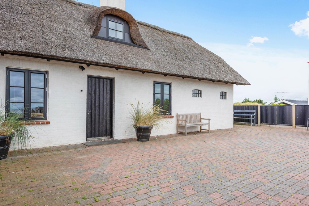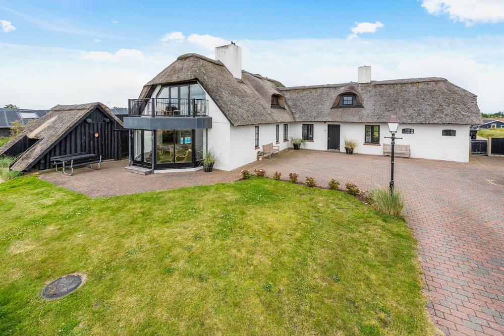 Et stenkast fra den naturskønne Lyngvig Havn med udsigt til Ringkøbing Fjord ligger dette skønne, stråtækte sommerhus med udendørs pool og plads til 16 personer. Huset blev gennemrenoveret i 2019, og i det nye interiør kombineres en moderne indretning med den klassiske bondegårdsstil. Det skaber en helt særlig stemning i feriehuset, som gør ferieopholdet ekstra specielt.
