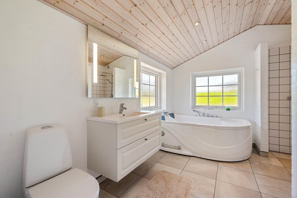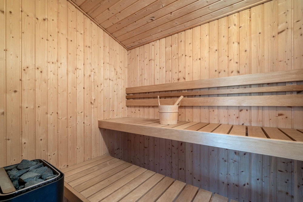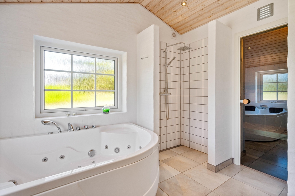 I feriehuset har du også både sauna og spa. Det indbyder ikke alene til selvforkælelse og ren afslapning med tændte stearinlys for de voksne. Men også til leg i de varme bobler for børnene.