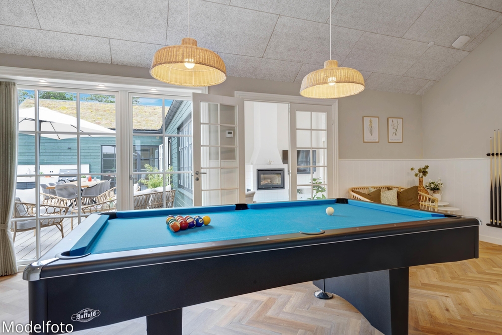 I sommerhuset finder I underholdning for store som små med både swimmingpool, bordtennis og billard. Den skønne poolafdeling lover jer timevis af sjov året rundt ? ligesom aktivitetsrummet. Her kan I dyste og kåre feriens bedste bordtennisspiller?