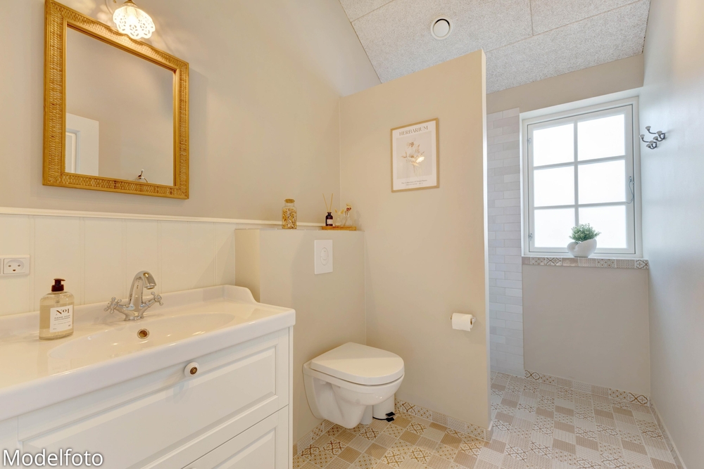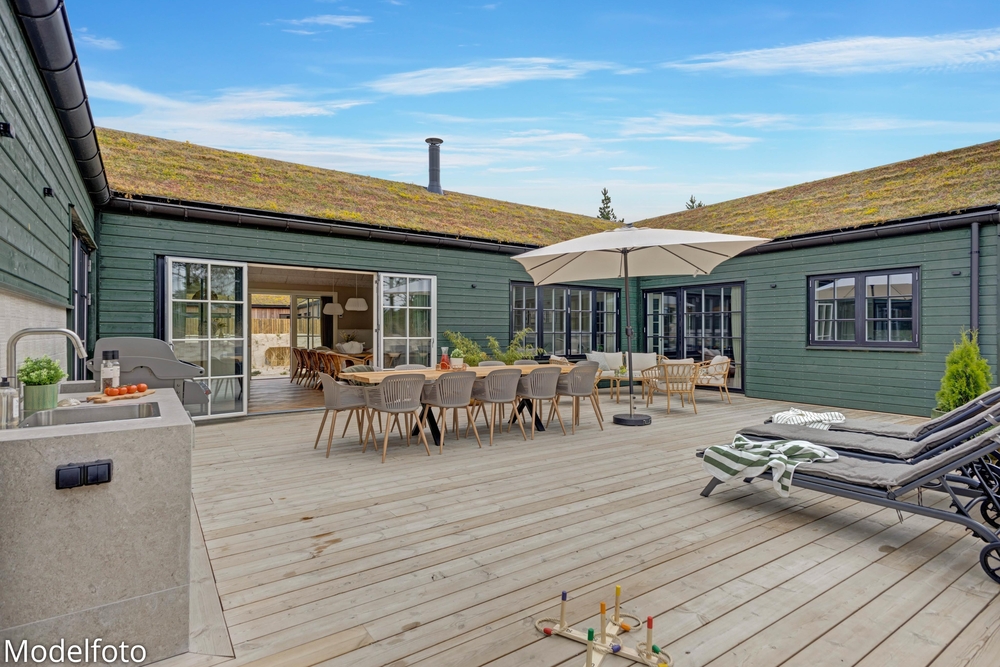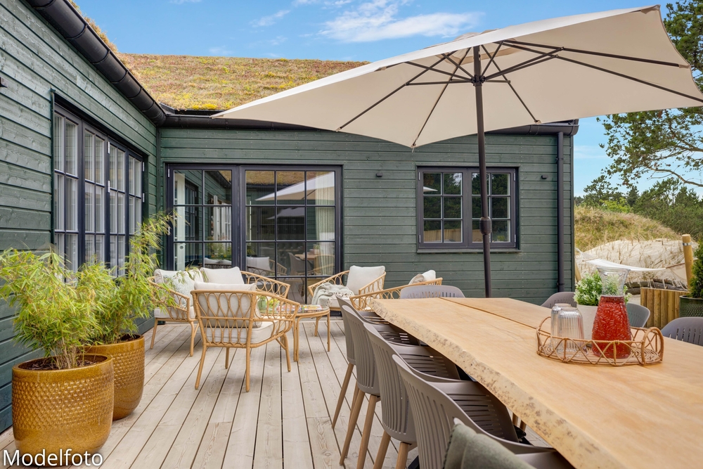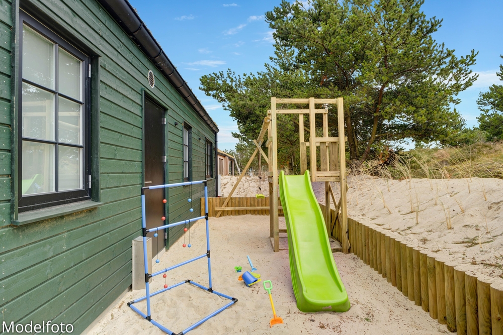 Sommerhuset har en dejlig afskærmet og overdækket terrasse med behagelige havemøbler, og her er der rig mulighed for at koble af og nyde den danske sommer. Slå benene op, læs en god bog og lad børnene lege på gyngerne og i sandkassen.