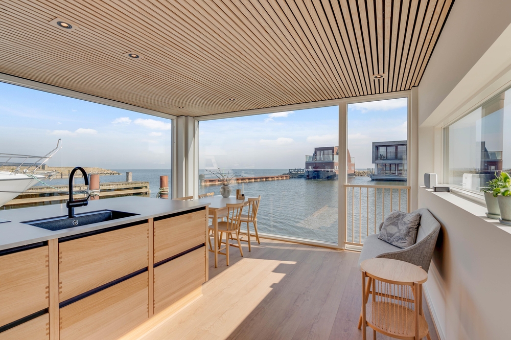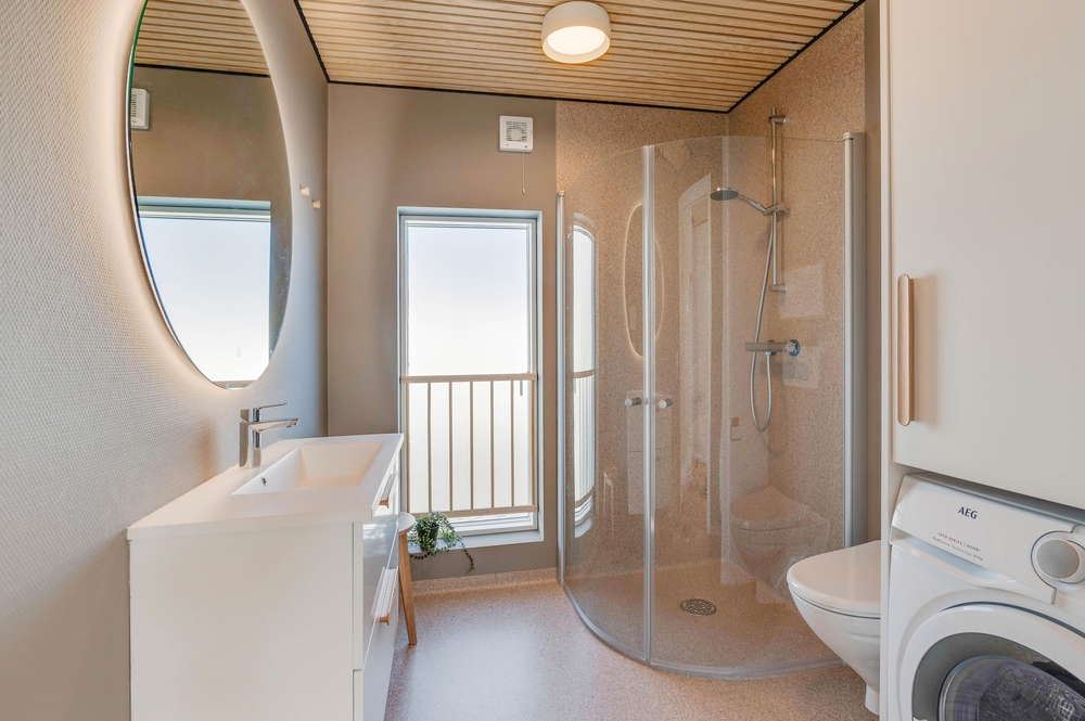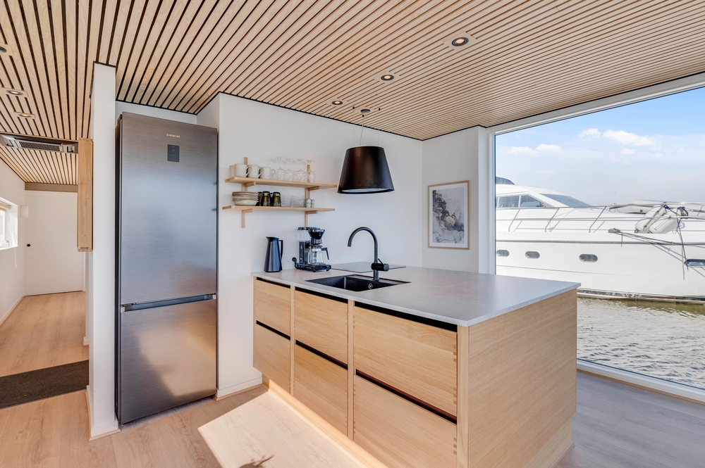 På husbåden finder I både vaskemaskine og tørretumbler, så I altid kan starte dagen med friske håndklæder til en dukkert i fjorden.