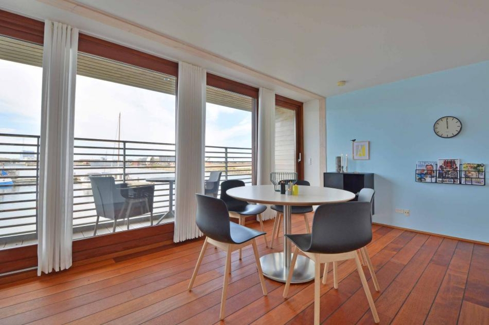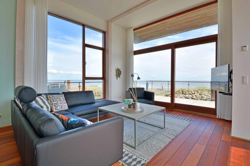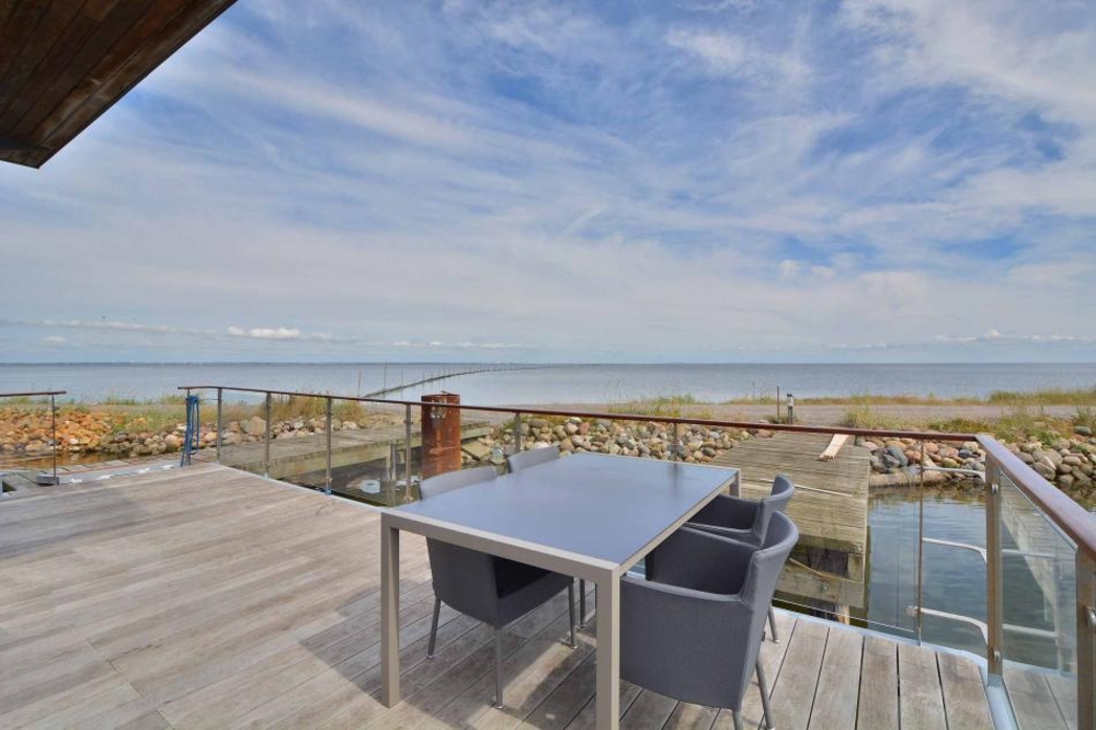 Husbåden ligger på Ringkøbing Fjord, hvor de små bølgeskvulp sætter prikken over i?et på den afslappende feriestemning med solbadning på terrassen og grillhygge om aftenen.