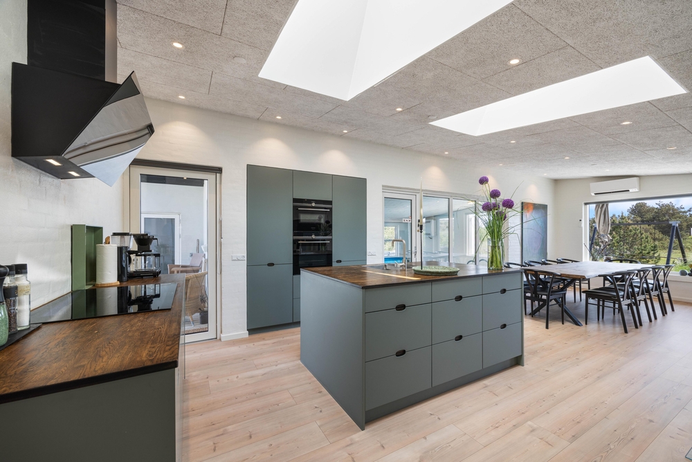I det veludstyrede og stilfulde køkken finder I både opvaskemaskine, mikroovn, et stort køleskab og 278 liters fryser, hvilket er med til at gøre madlavningen og alt det som følger med til en leg. Mens amatørkokken giver den gas i køkkenet, kan børnene sidde omkring bordet i spiseområdet og spille kort, lægge puslespil eller tegne.