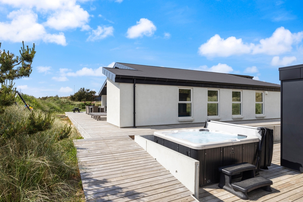 Trænger I til et afslappende afbræk fra hverdagen, hvor komfort, hygge og wellness gerne må være kodeordene for jeres ferie? Så er I landet det helt rigtige sted. For i det lækre poolhus på Marehalmen 27 i Søndervig får I både pool, udendørs spabad, naturgrund og hyggelige omgivelser. Der er plads til 10 overnattende gæster i huset samt 2 hunde, hvilket gør feriehuset til den perfekte ramme for den udvidede families ferieplaner.