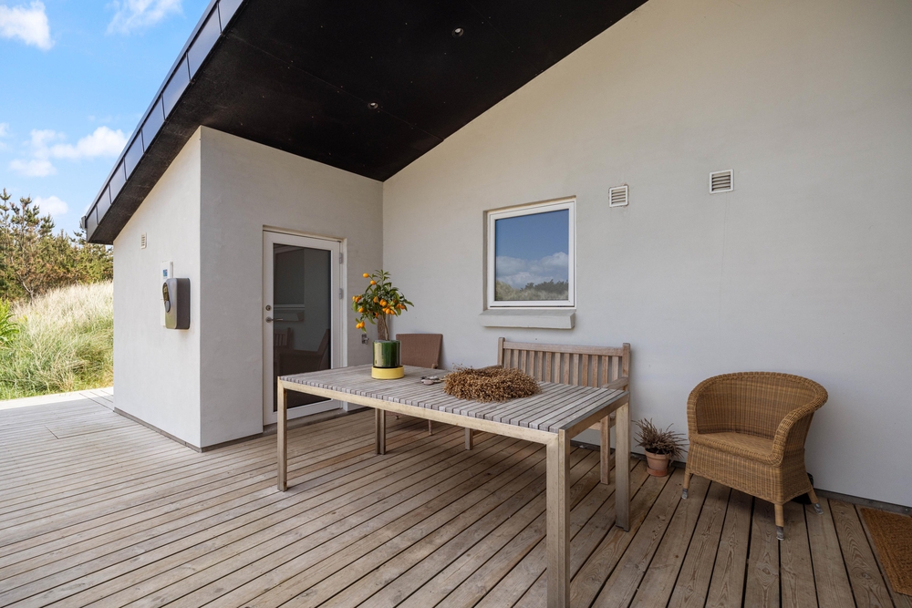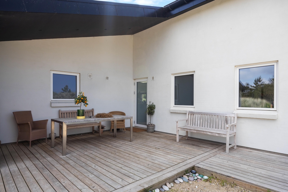 Desuden råder sommerhuset også over en varmepumpe, så I med garanti kan holde varmen på de lidt koldere dage. Til de små er der derudover et gyngestativ og en trampolin hvor børnene vil kunne får brændt en masse krudt af ved at tage nogle raske gynge- og hoppeture. Imens de små hygger sig med gyngeture og på trampolinen, har I mulighed for at nyde nogle skønne solskinstimer på den 250 m2 skønne træterrasse.