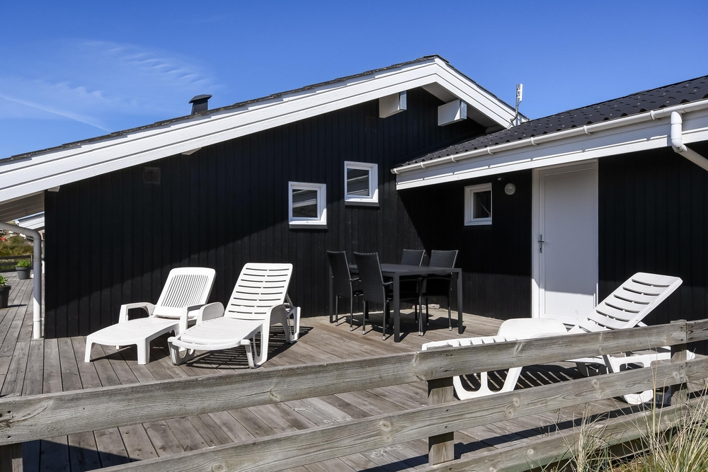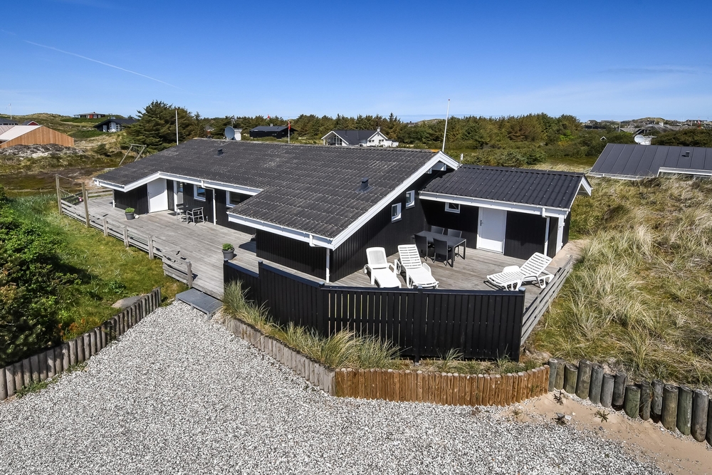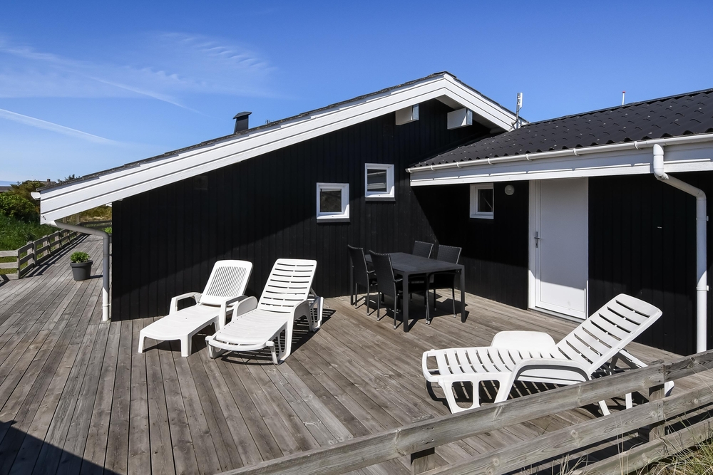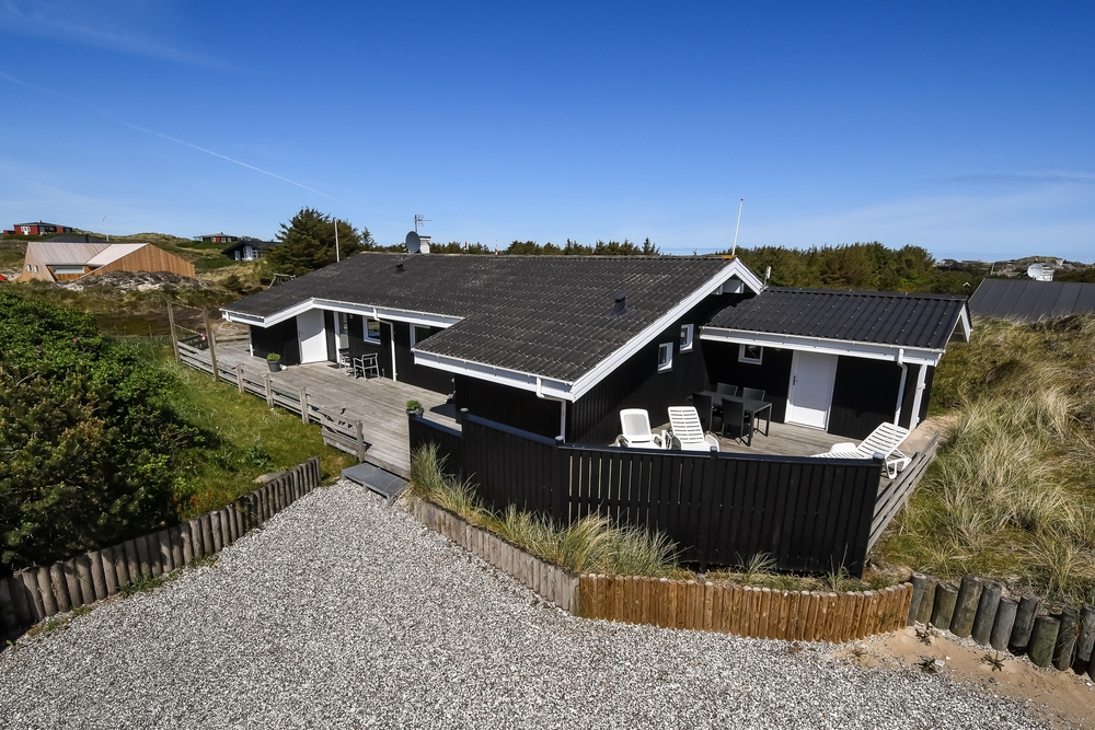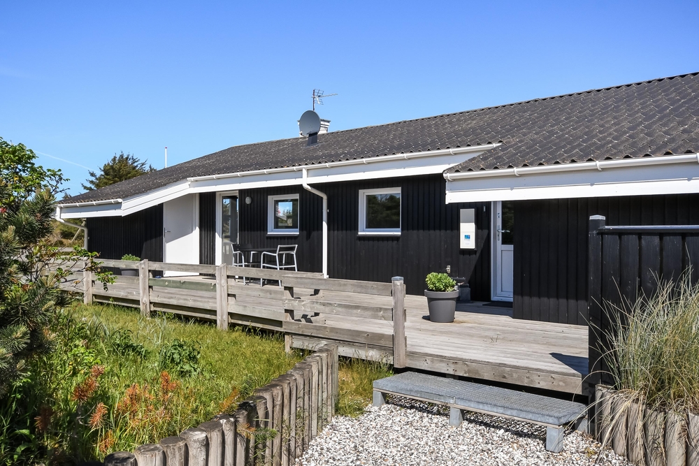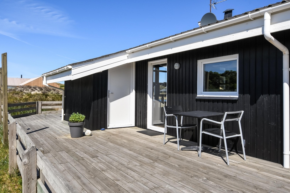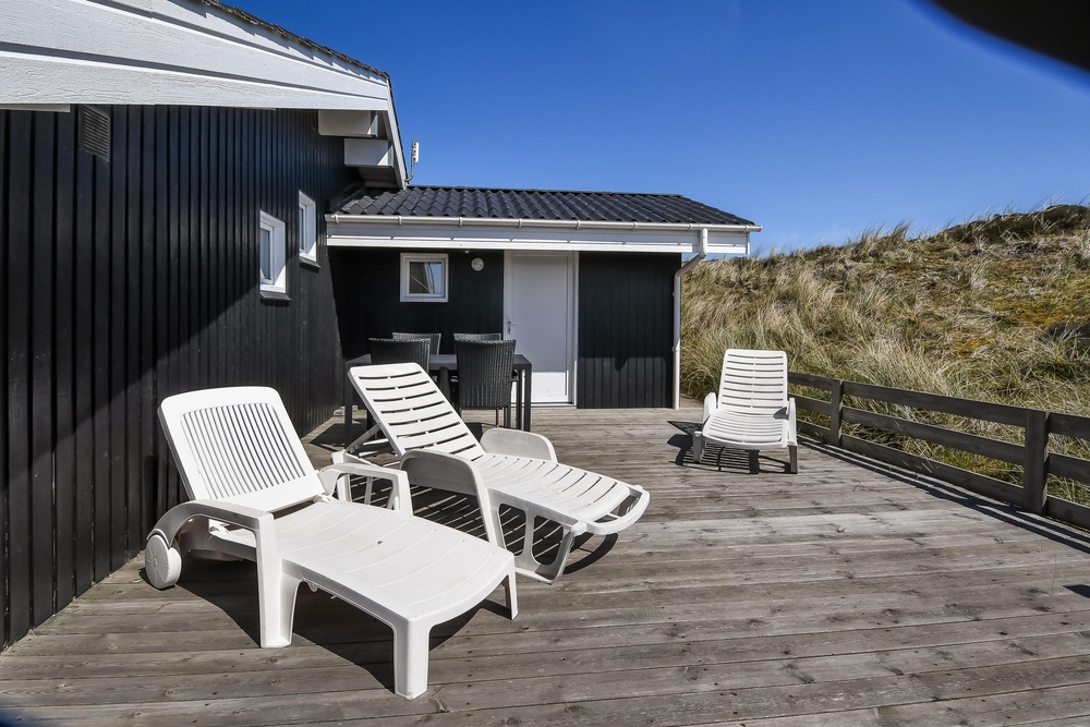 Sommerhuset på Marehalmen 52 ligger på en godt 2000 m2 stor grund og hele vejen rundt om sommerhuset er der en dejlig træterrasse. Her kan de voksne sidde og nyde det gode vejr i liggestolene, mens børnene hygger sig i sandkassen eller på gyngen. I er omgivet af smukt klitlandskab og med kun 300 meter ned til det bølgende Vesterhav og den lange sandstrand er det oplagt at gå mange ture her på ferie.