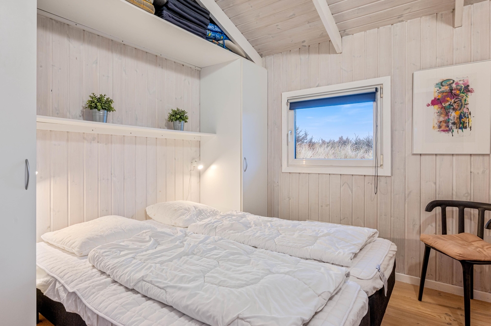 Velkommen til Marehalmen 52! Det ideelle sted at holde jeres næste ferie, om I er en lille familie eller gruppe venner. Sommerhuset er på 110 m2 og har plads til 6 personer. Beliggenheden er helt i top med kun 300 meter til havet, hvor I kan nyde lange gåture langs stranden mens I lytter til bølgernes brusen. Ferieboligen indeholder også både spa og sauna til at bidrage til følelsen af velvære og afslapning på ferien.