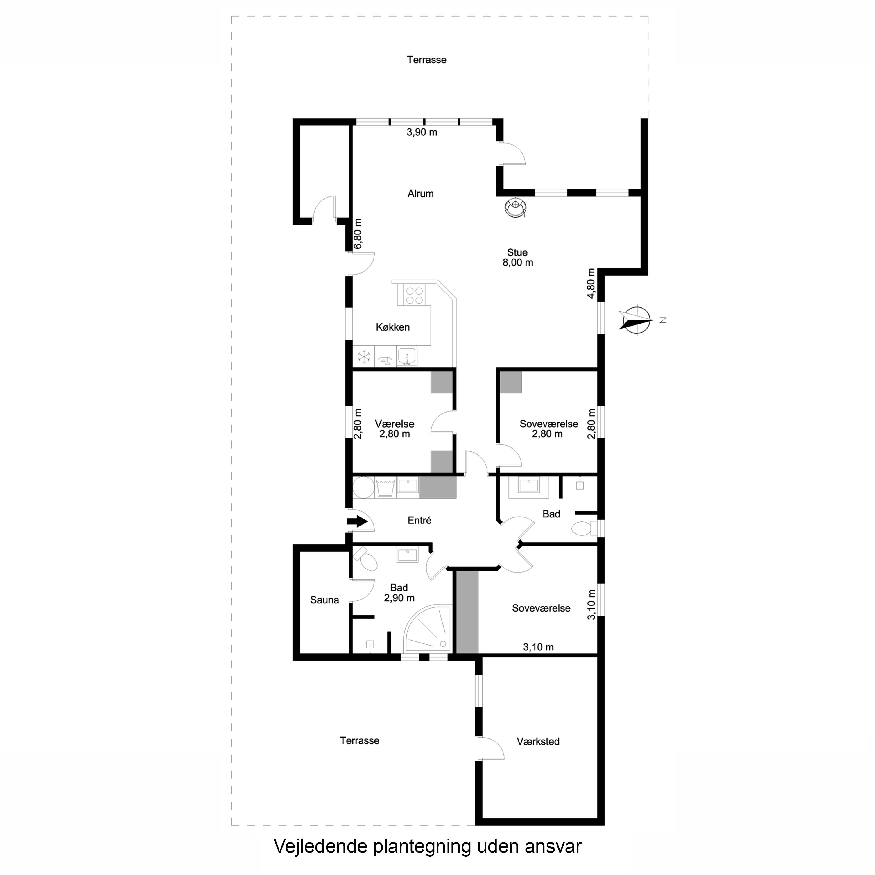 Sommerhuset på Marehalmen 52 indeholder 3 soverum og der er 2 badeværelser, hvoraf det ene har spa og sauna. Så I rigtigt kan få opladet batterier på ferien.