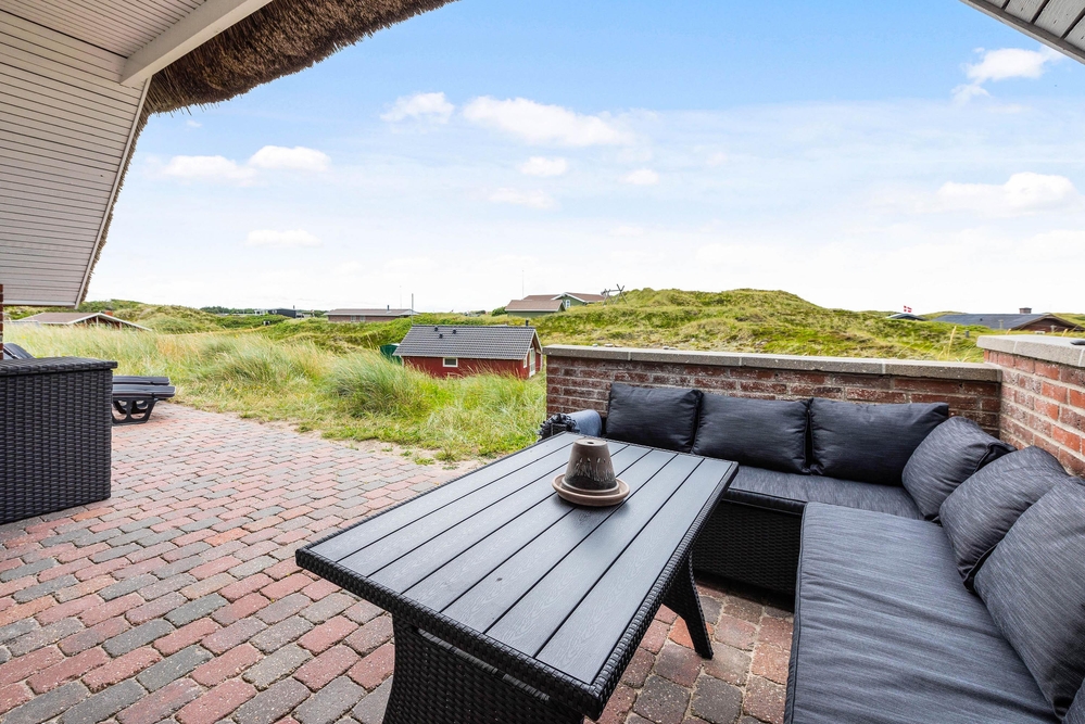 Sommerhuset har en afskærmet terrasse, der giver jer mulighed for at nyde grillretter på de inkluderede havemøbler, mens I suger den storslåede panoramaudsigt til jer. Huset er beliggende på en skøn klitgrund, der understøtter en følelse af privatliv og nærhed til naturen. Her kan I have familiens bedste ven med, da op til én hund er tilladt, hvilket gør det nemt at inkludere alle medlemmer i ferien.