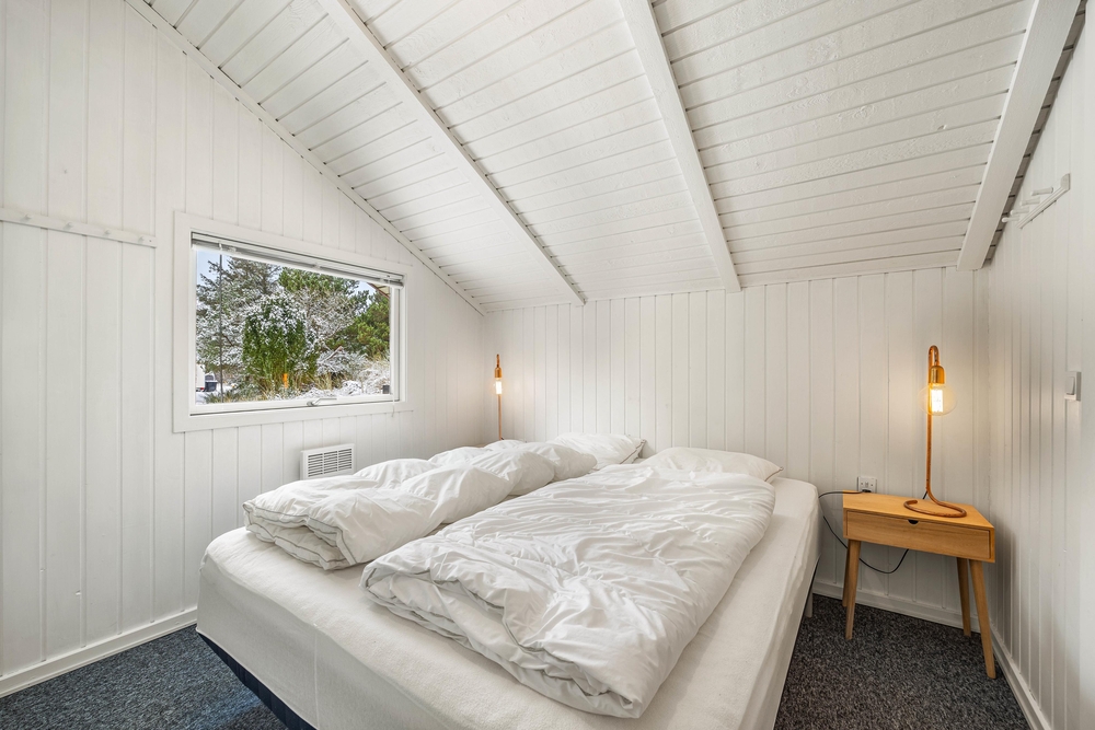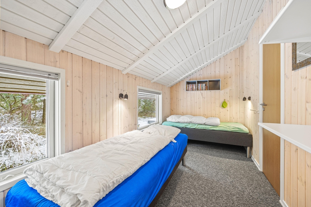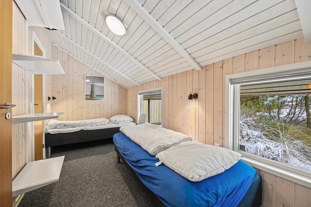Efter en dejlig feriedag i Blåvand kan I søge mod de 2 soveværelser i sommerhuset. På det ene soveværelse venter jer en dobbeltseng, og på det andet soveværelse står 2 enkeltsenge klar til, at I kan få jer en god nats søvn.