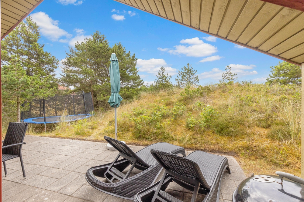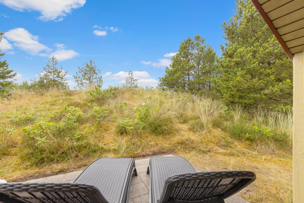 Sommerhuset ligger på en skøn naturgrund i Blåvand, der er 2.132 kvadratmeter stor. Her kan I rykke jeres ferie ud på de feriedage, hvor solen står højt på himlen. I kan sætte jer til rette i havemøbler og liggestole på en af sommerhusets terrasser, mens I slapper af i solen.