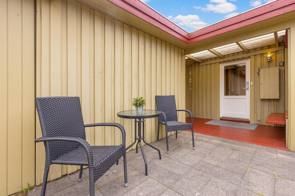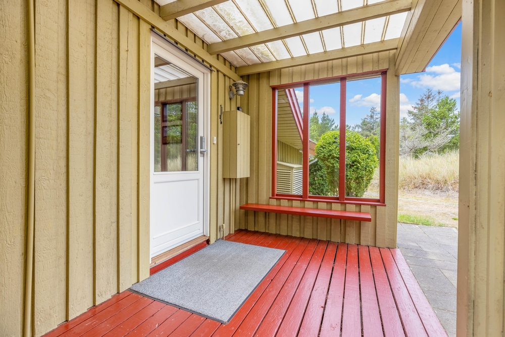 Den ene af sommerhusets terrasser er delvist overdækket, og I har derfor også mulighed for at nyde en stund i skyggen, hvis I får brug for en pause fra solen. Mens der bliver slappet af på terrasserne, kan børnene lege i haven, hvor de kan bygge sandslotte i sandkassen og gynge på gyngestativet.