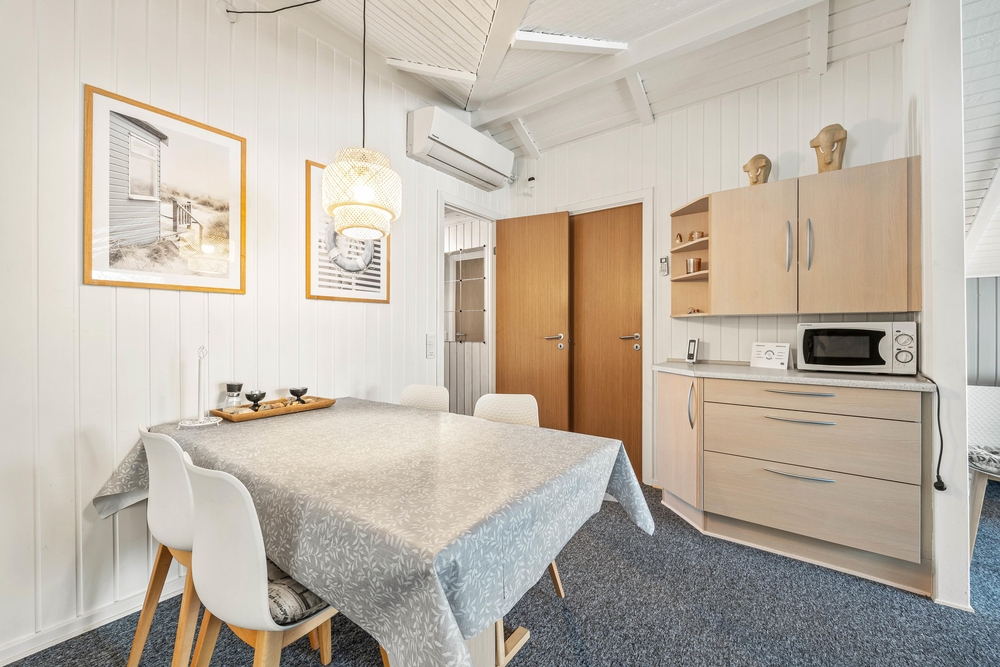 Sommerhuset har en energivenlig varmepumpe, der sørger for et godt indeklima til jer. Derudover er der en opvaskemaskine i køkkenet samt en vaskemaskine i sommerhuset, der hjælper jer med at klare feriens praktiske husarbejde.