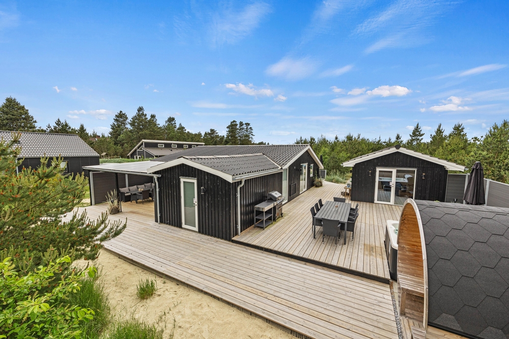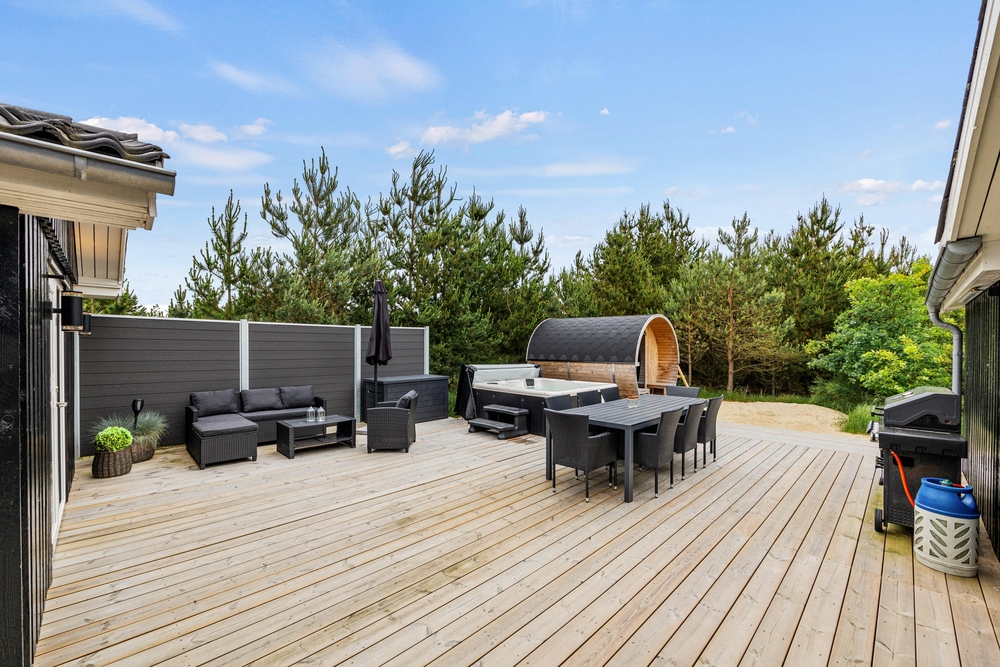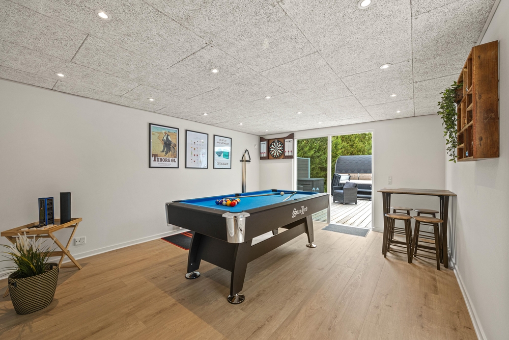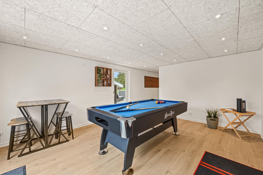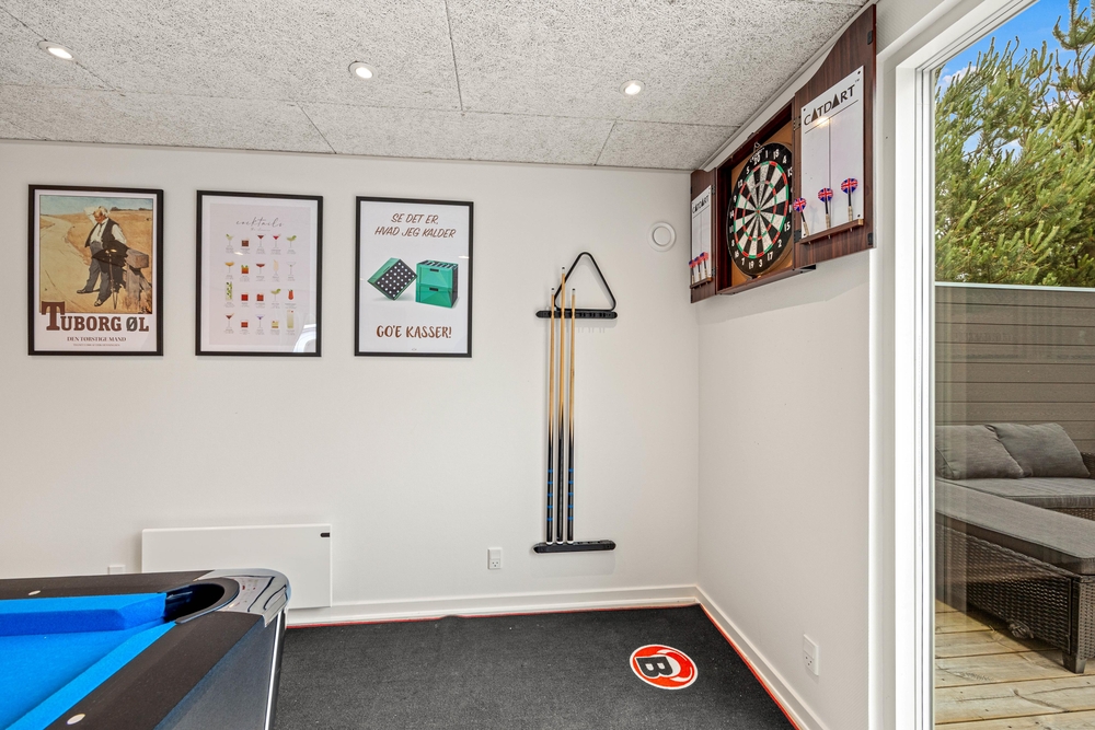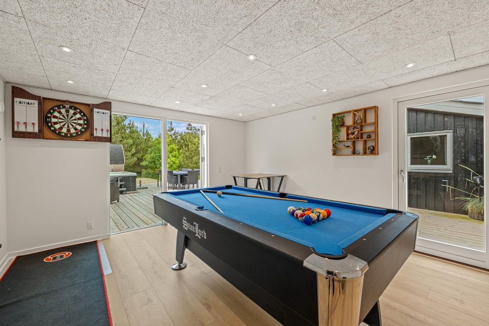 Det stopper dog ikke ved soveværelserne. Vores feriehus i Blåvand er fyldt med en lang række luksuriøse faciliteter, der vil gøre din ferie endnu mere mindeværdig. Du kan nyde en aktiv aften med familie eller venner i feriehusets aktivitetsrum med pool eller slappe af og lade op i den lækre udespa og sauna.