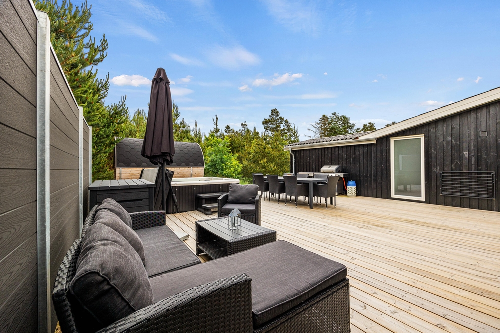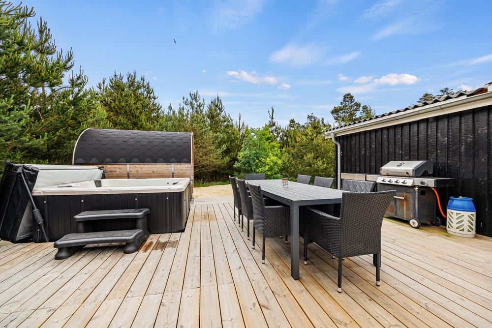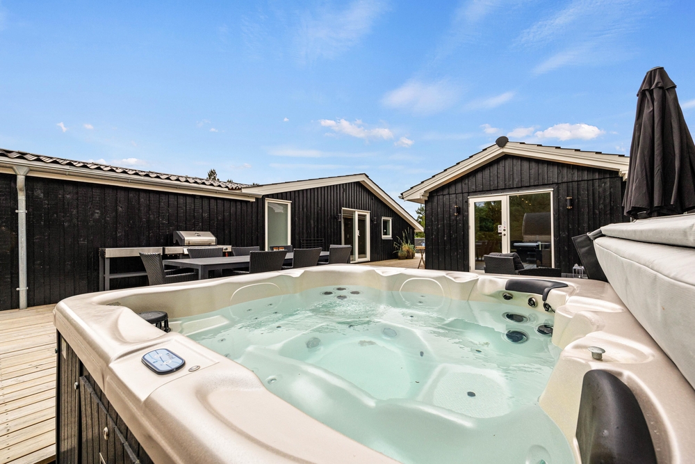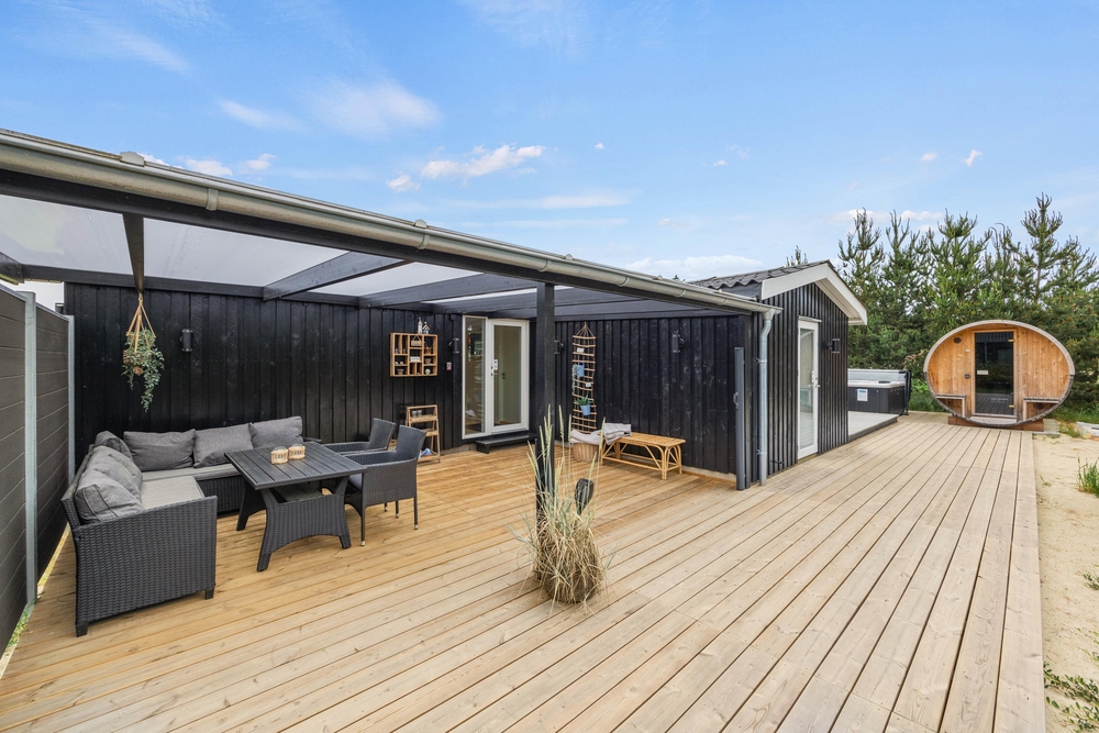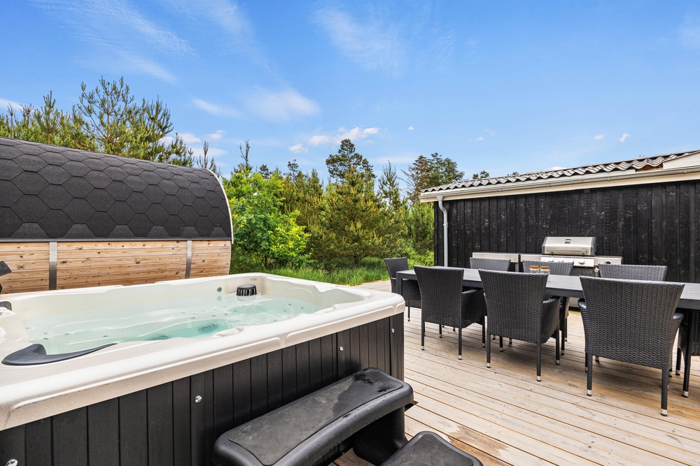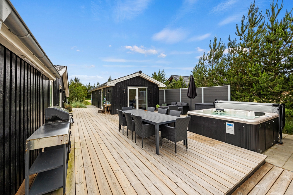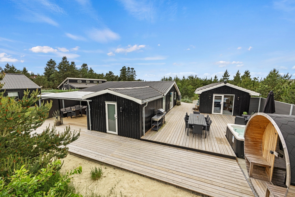 Det stopper dog ikke ved soveværelserne. Vores feriehus i Blåvand er fyldt med en lang række luksuriøse faciliteter, der vil gøre din ferie endnu mere mindeværdig. Du kan nyde en aktiv aften med familie eller venner i feriehusets aktivitetsrum med pool eller slappe af og lade op i den lækre udespa og sauna.