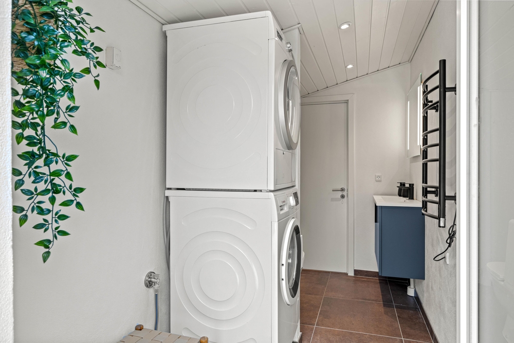 Vi ved, det kan være stressende at tage på ferie, men i feriehuset i Blåvand er alt det praktiske taget hånd om. Det fuldt udstyrede køkken med opvaskemaskine gør måltidsforberedelse til en leg, og med både vaskemaskine og tørretumbler til rådighed, behøver I ikke bekymre jer om vasketøjet. Ferieboligen har også gulvvarme i badeværelset, så I kan holde jer varme selv på de koldeste dage.