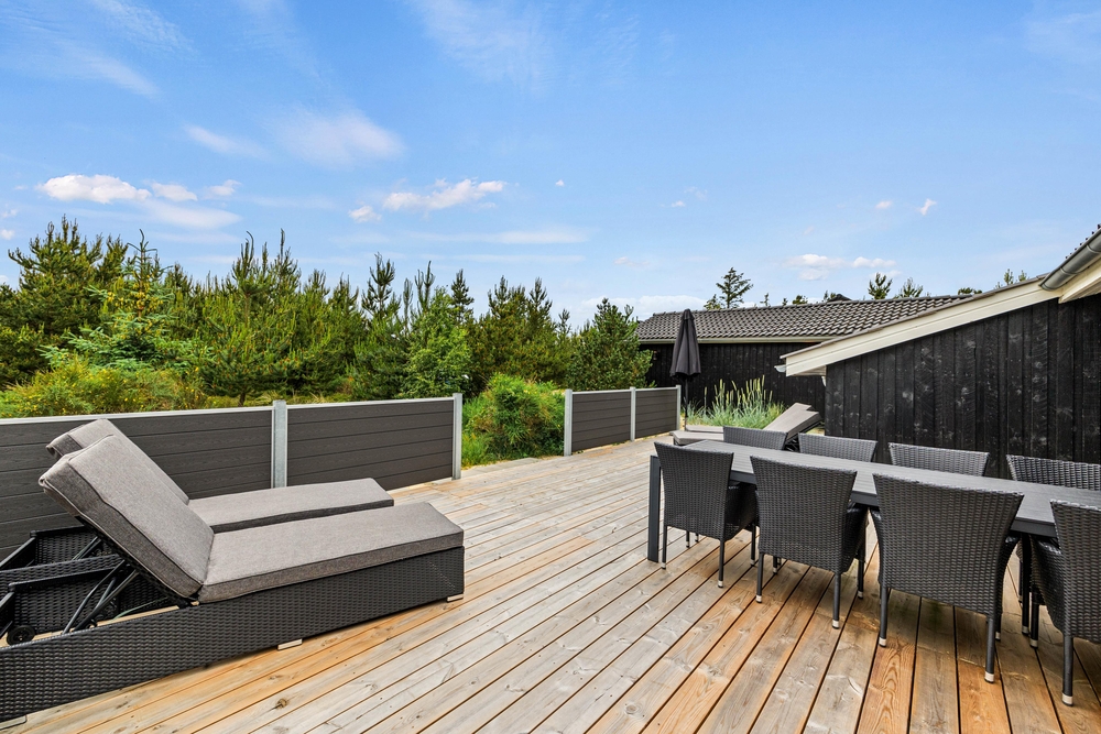 Feriehuset i Blåvand ligger centralt kun 1500 meter fra havet og 500 meter fra nærmeste indkøbsmuligheder. Her er alt, hvad I har brug for blot en kort gåtur væk ? både spændende butikker, velassorterede supermarkeder, specialbutikker som bager og slagter og flere gode restauranter . Uanset om I vil tilbringe jeres ferie med at udforske Blåvands smukke natur, eller bare vil slappe af og nyde tiden med de nærmeste i jeres eget private tilflugtssted, er denne ferieadresse et rigtigt godt valg.