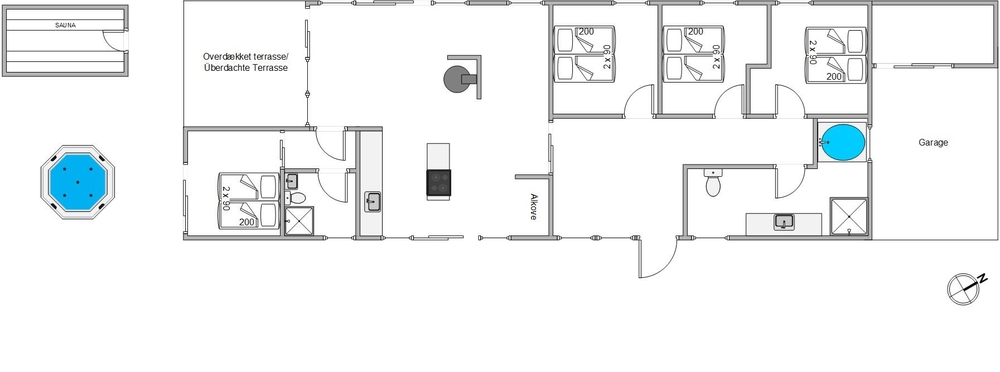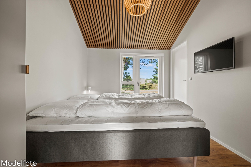 Det imponerende sommerhus på Midtvej 8A er 153 m2 og indrettet med tanke på både komfort og stil. Her er alt, hvad I behøver for at føle jer hjemme. Sommerhuset er til 8 personer, og de 8 sovepladser er fordelt på 4 rummelige soveværelser, og med 2 fuldt udstyrede badeværelser er der ikke kø til bruseren. Begge badeværelser er naturligvis med gulvvarme, og vaskemaskine samt tørretumbler er her også.