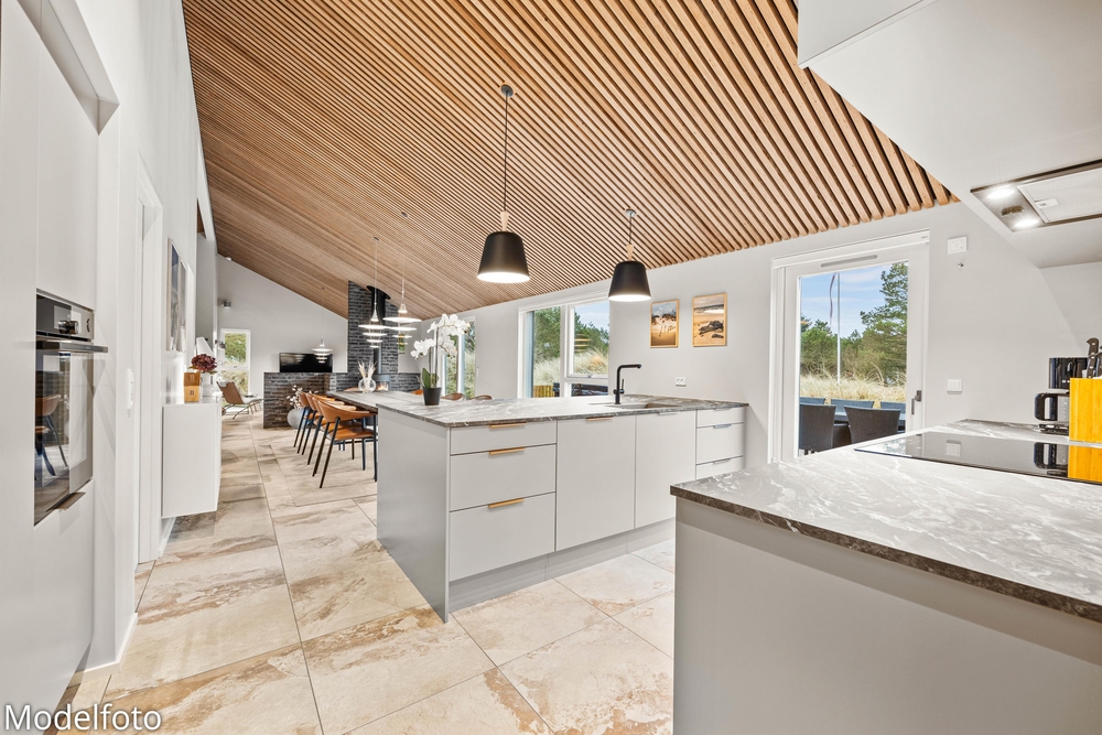 Hjerterummet er det åbne alrum, hvor køkken og stue smelter sammen. Her er lyst og og god plads til familielivet ? uanset om I skal lave dejlig mad i det veludstyrede køkken, spille brætspil eller slappe af i sofaen med en god film. Fra det rummelige alrum er der direkte udgang til den fantastiske terrasse.
