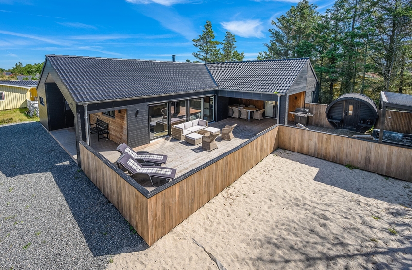 Dette feriehus på Midtbyvej 9 A har alt, hvad hjertet begærer ? og mere til. Det flotte feriehus er lyst og lækkert indrettet og byder blandt andet på 2 saunaer, spabad, udendørs spabad og aktivitetsrum. Den store terrasse har masser af skønne spots og en overdækket lounge.