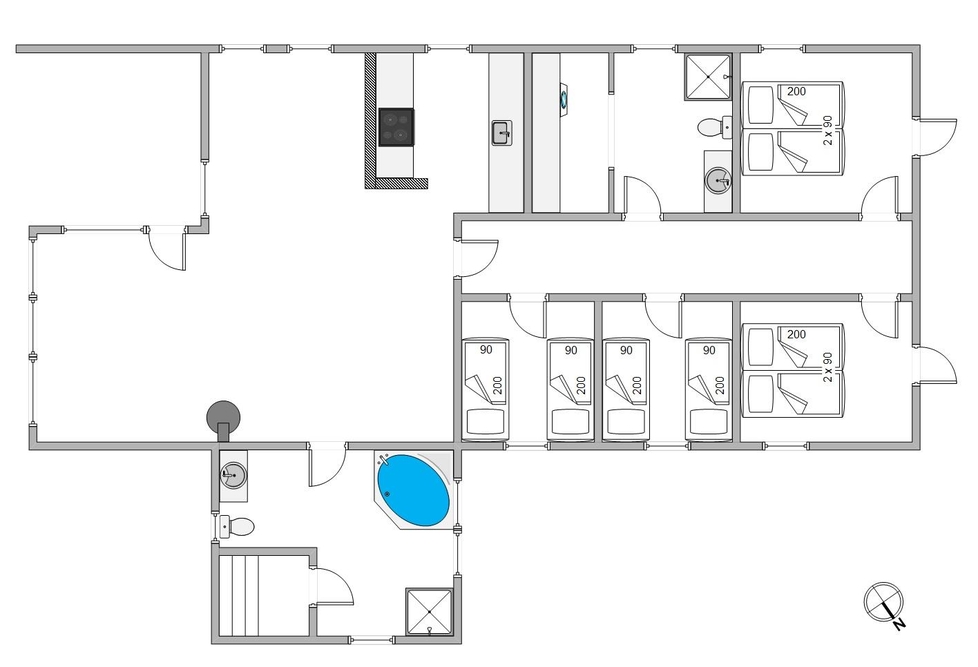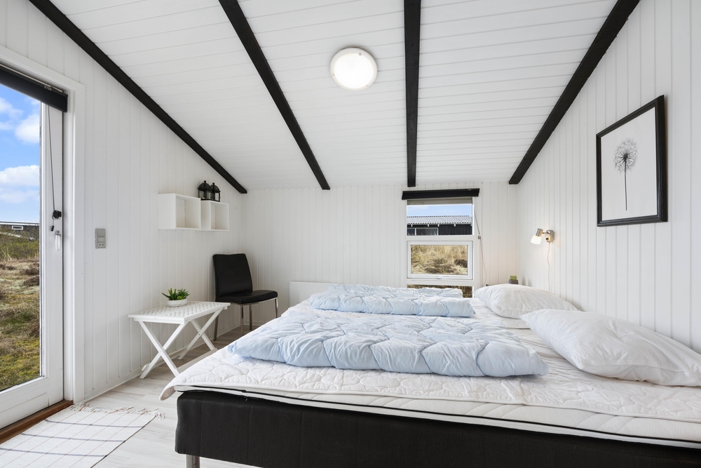 Dette store sommerhus har god plads til 8 personer. De 4 soveværelser er alle med trælaminat og 2 af soveværelserne har dobbeltsenge. De sidste 2 soveværelser har hver 2 enkeltsenge til en god nats søvn.