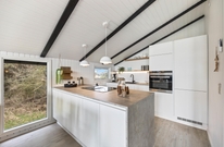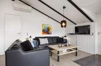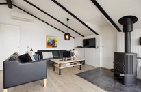Det lyse køkken har en opvaskemaskine, en mikroovn og en fryser på 10 L. Køkken og stue er i et stort rum, hvor der er loft til kip, hvilket skaber en hyggelig atmosfære i rummet. I stuen er der en brændeovn, et TV, chromecast, parabol, en DVD og en radio m/CD-afspiller. Her er der god plads til familielivet, og I kan lave dejlig mad sammen, spille brætspil eller noget helt tredje ? mulighederne er mange!