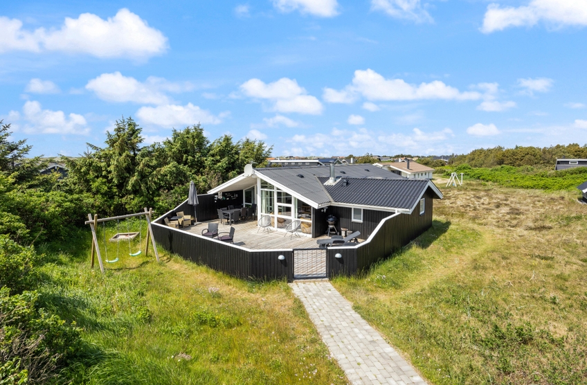 Sommerhuset ligger på en dejlig naturgrund kun 750 meter fra Vesterhavet. Derudover har I blot 500 meter til købmanden, hvor I kan handle nybagte rundstykker, is til desserten eller lækkert grillkød.