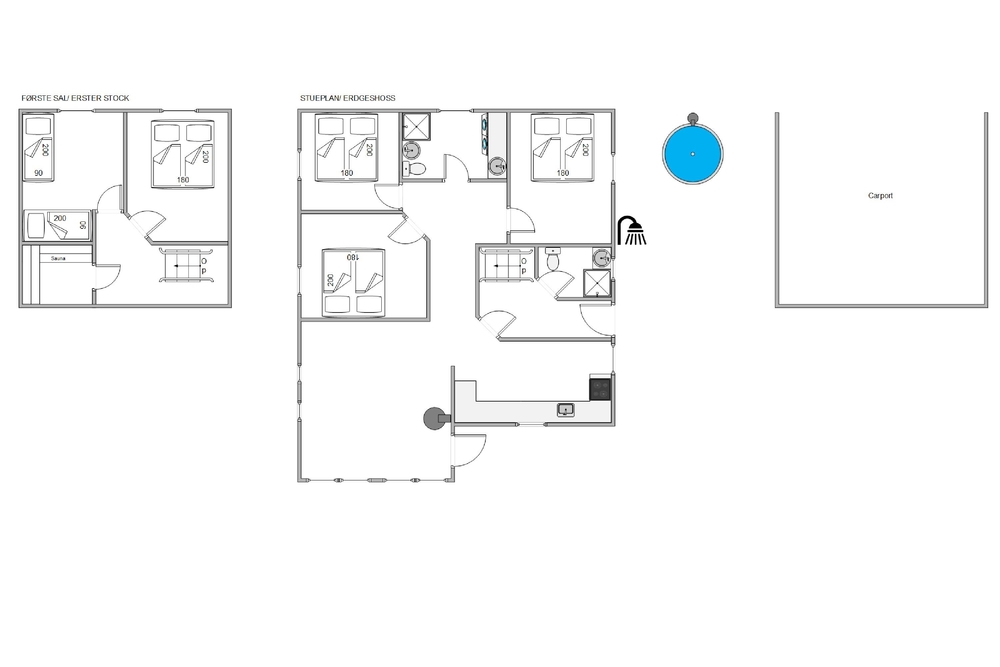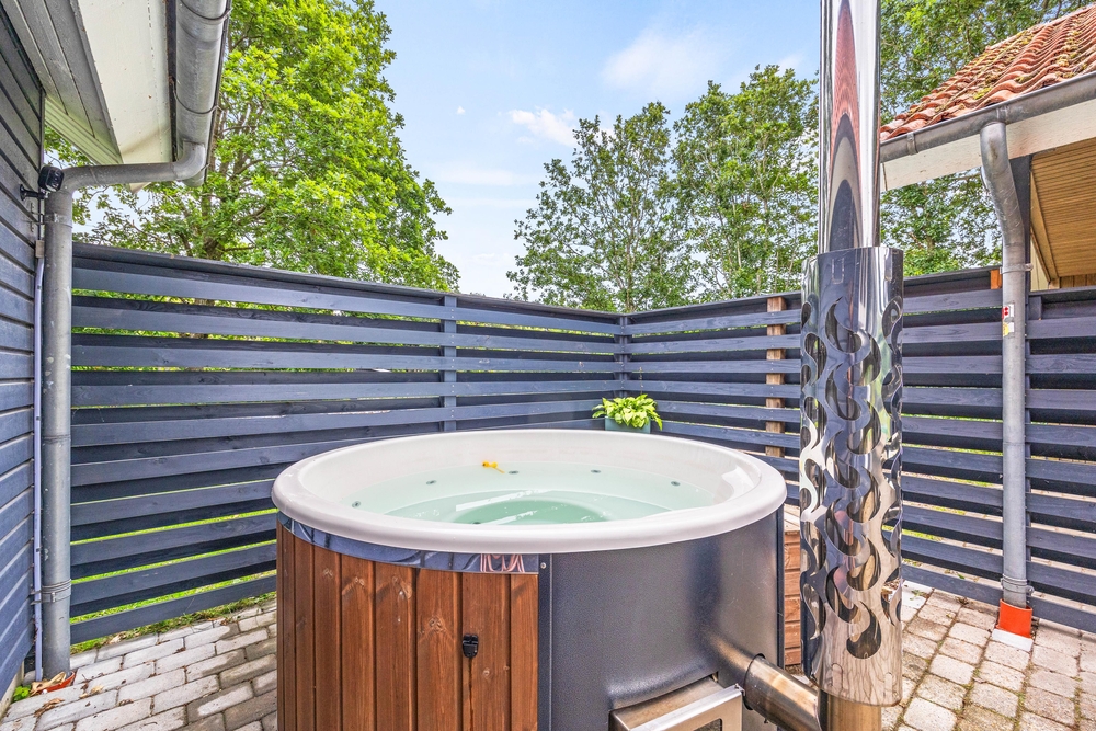 Til ultimativ afslapning og velvære tilbyder sommerhuset også et udendørs vildmarksbad, hvor I kan sidde og nyde den friske luft under stjernehimlen. Der er også en udebruser til dem, der ønsker en forfriskende skylning efter en dag ved stranden. Udebruser kan benyttes fra april til november.