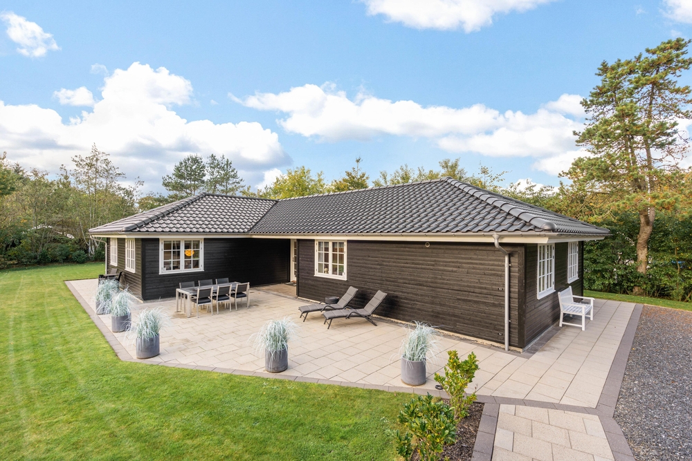 I sommerhuset på Møllevangen 47 i Jegum Ferieland bliver I budt velkommen af en moderne indretning inde som ude, hvor der er tænkt på detaljen og praktiske løsninger. Her er rammerne sat til den perfekte ferie for 6 personer, med blandt andet sauna og tømmespa. Det 130m2 store sommerhus fremstår indbydende og hyggeligt med højt til kip.