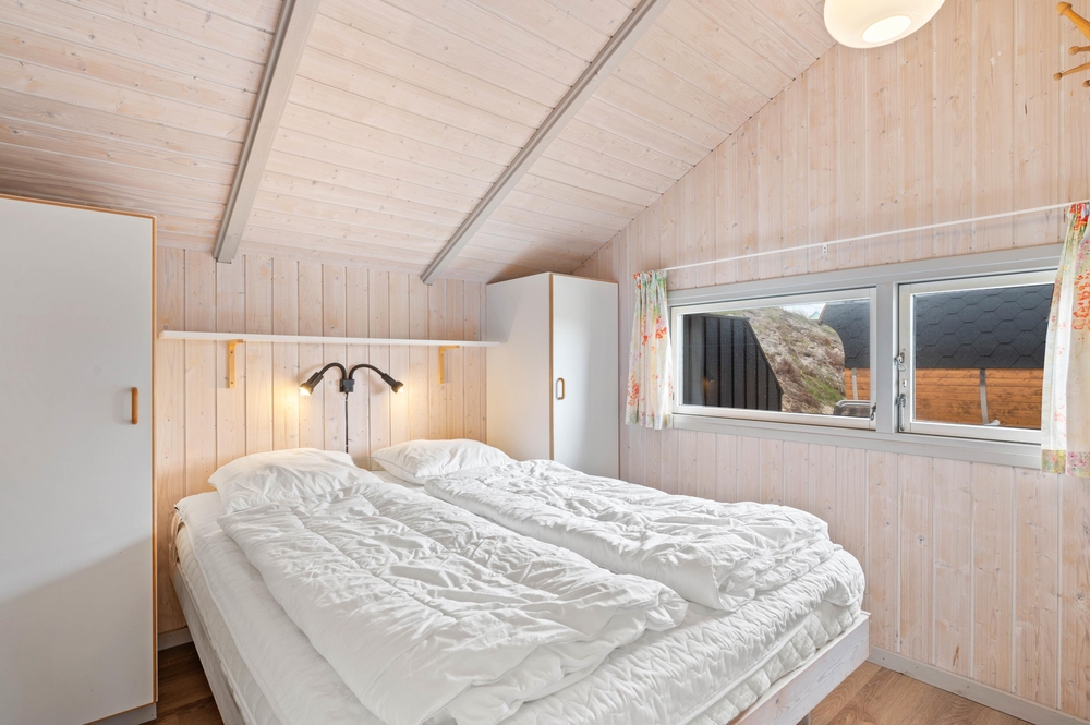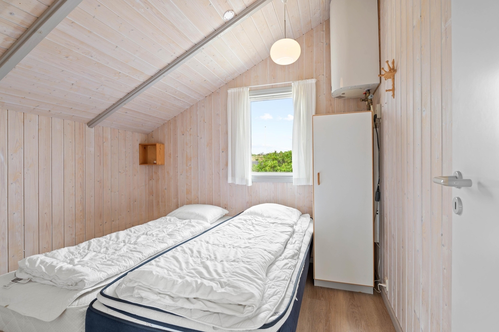 Sommerhuset ligger på en klitgrund, og en lille trappe fører dig en smule højere op. Der er en bænk på en lille bakke, hvorfra I virkelig kan nyde panoramaudsigten og se den nedadgående sol med en kølig drink i hånden. Mere romantisk kunne dagen næppe afsluttes.