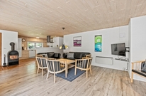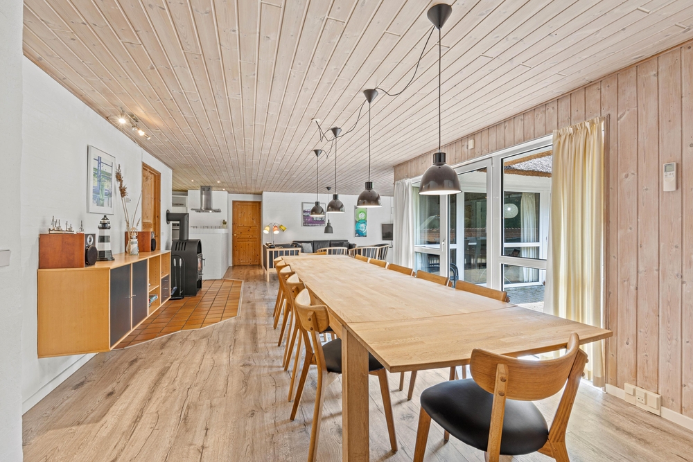 I det åbne køkken er alt, hvad I behøver for at forkæle hinanden med lækre måltider. Er I mange, eller er der lystfiskere iblandt jer, er den separate fryser på 110 L en god hjælp til opbevaring, derudover er der 2 køleskabe. I wellnessområdet kan I tilbringe utallige fornøjelige timer sammen i spa, sauna og swimmingpool. Lad børnene lave bomber i poolen, mens de voksne slapper af i spaen ? eller omvendt. De 3 badeværelser med gulvvarme bidrager til, at I ikke behøver at stå i kø til morgenbadet. Og i de hyggelige soveværelser kan I alle sove rigtig godt ud i den friske vesterhavsluft.