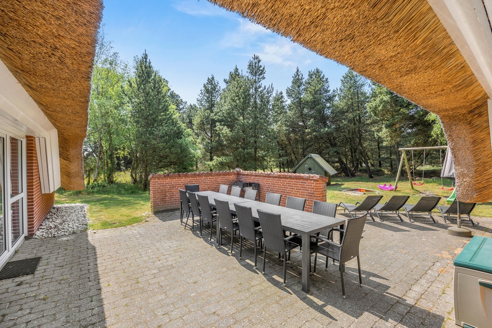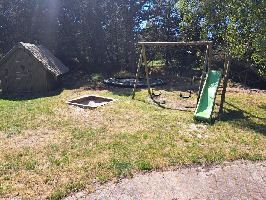 På den åbne terrasse kan I slappe af i de komfortable havemøbler og liggestole, imens børnene leger på gynger, rutsjebane og i sandkasse. Her er såmænd også en nedgravet trampolin, hvor børnene kan hoppe. Smør en ordentlig gang håndmadder og spis frokosten udendørs ved de lange borde på terrassen. Besøg den fantastiske sandstrand på vestsiden af øen og nyd det salte bekendtskab med Vesterhavet. På vejen tilbage kan I købe ind til aftensmaden i de lokale butikker med kvalitetsvarer ? fisk ? grillmad ? lækre brød og så videre.