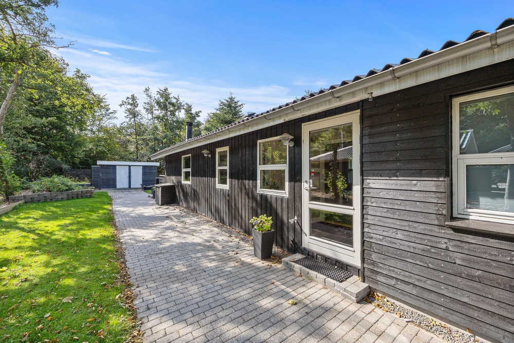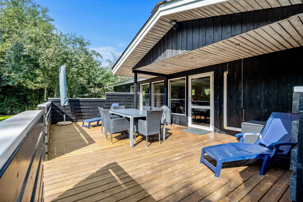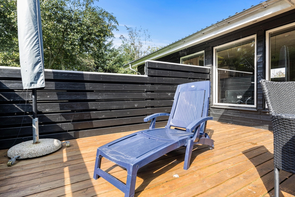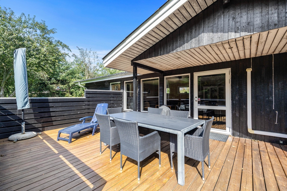 Fra stuen åbner terrassedørene sig ud til sommerhusets udendørs oase, hvor ferieglæden fortsætter. Her venter alt til jeres ferieoplevelse, fra komfortable havemøbler til solvogne, parasol og grill ? alt sammen perfekt til hyggelige middage under åben himmel og afslappende stunder.