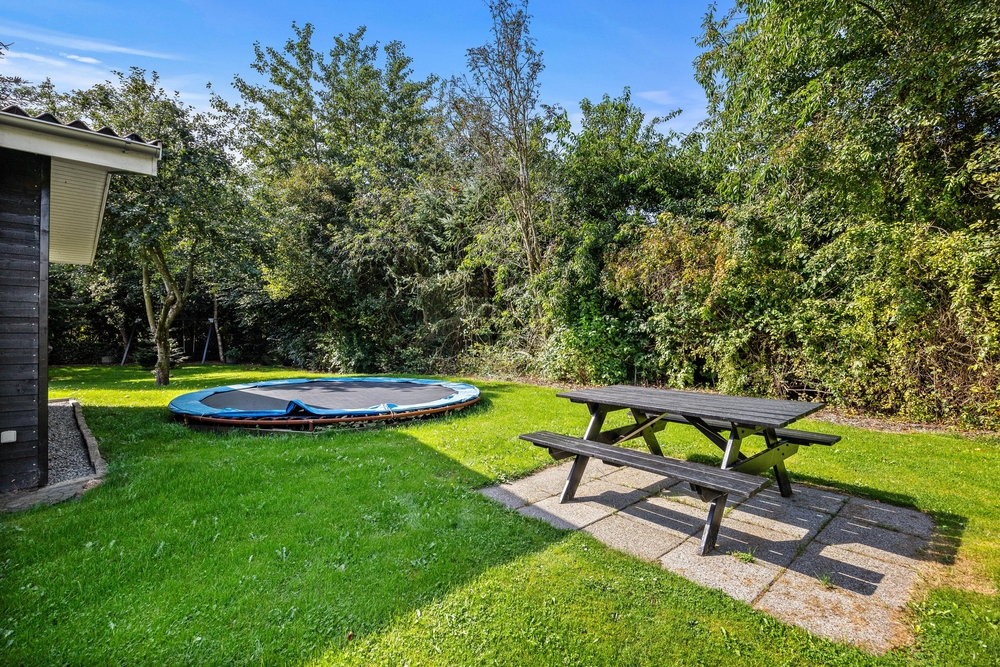 Til børnene er der skabt et paradis med en sandkasse, gynge og trampolin, hvor de kan brænde energi af og lege til hjertets indhold. Og når I ønsker at udforske den rummelige udendørs plænegrund på hele 980 kvadratmeter, er der masser af plads til leg og spil med jeres firbenede ven.