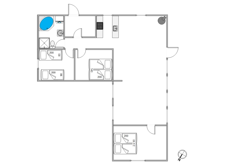 Med 3 soveværelser har sommerhuset plads til hele familien eller vennerne. 2 af værelserne er indrettet med komfortable dobbeltsenge, mens det tredje værelse har 2 enkeltsenge, perfekt til børnene.
