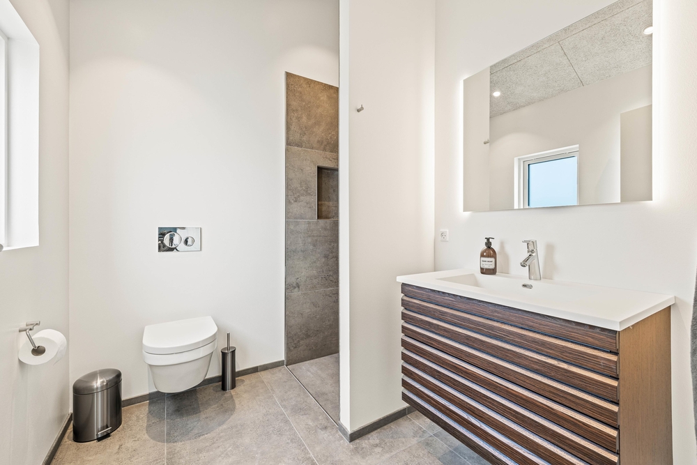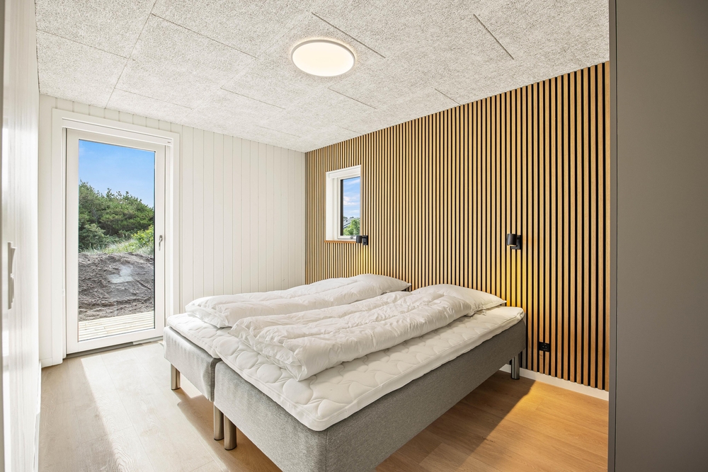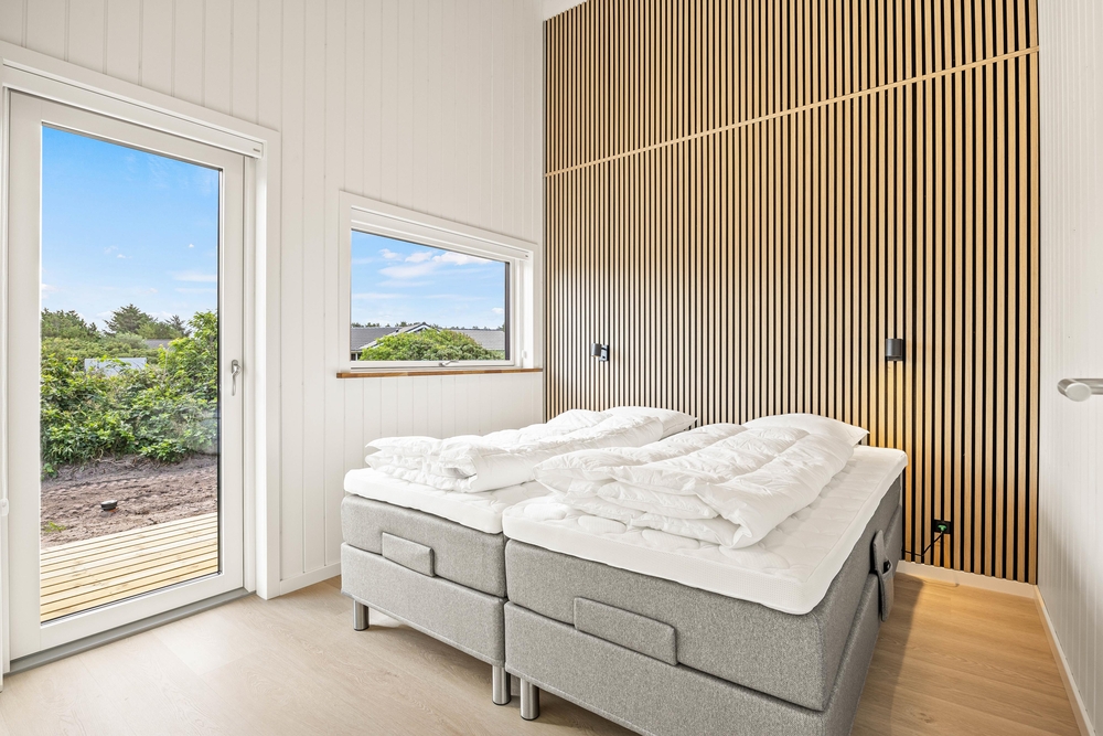 De 4 soveværelser er ideelt fordelt i feriehuset, så I nemt kan trække jer tilbage, når som helst for lidt privatliv eller en middagslur. Værelserne er alle udstyret med komfortable dobbeltsenge. Samtidig er der et badeværelse med gulvvarme i begge ender af sommerhuset, så I ikke behøver at stå i kø til morgenbadet.