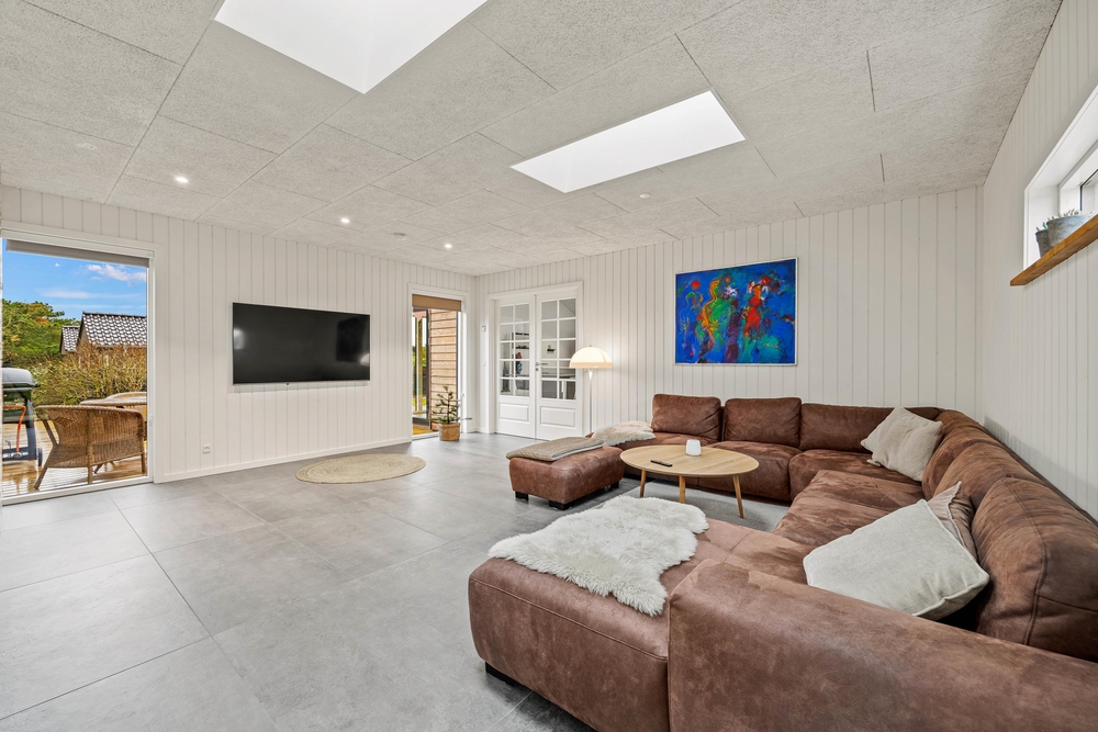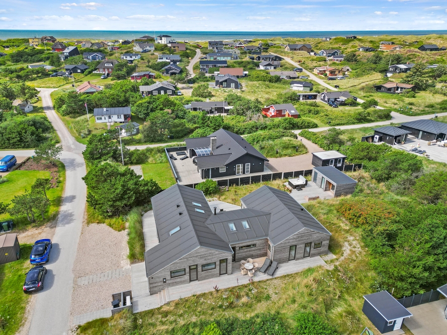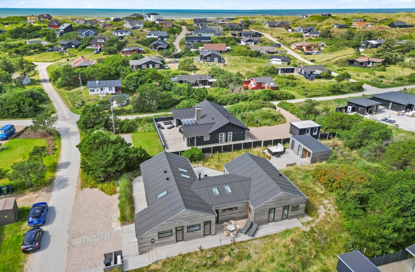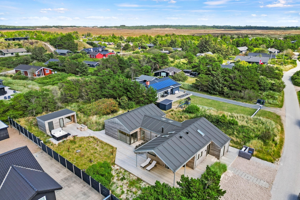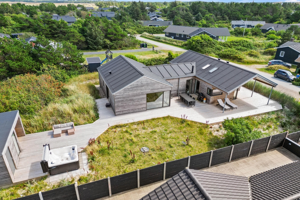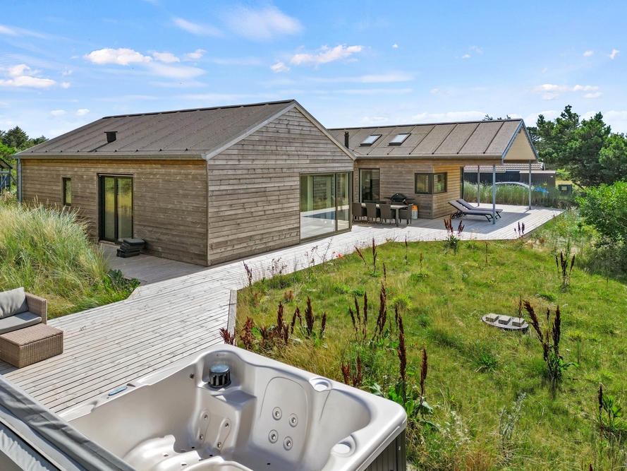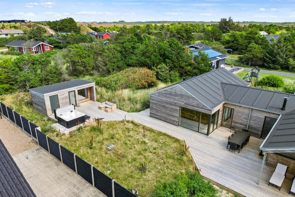 Velkommen til dette ekstravagante feriehus ved Henne Strand. Her er spabad, sauna og aktivitetsrum, så alle ønsker kan opfyldes. Der er plads til 8 personer på dette i alt 188 kvm store sommerhus, som er bygget i 2023. Ideelt til flere par eller en større familie og gratis slutrengøring er inkluderet, så I kan nyde jeres ferie til det sidste.