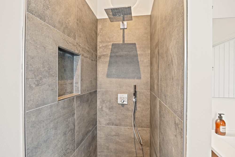Under den overdækkede del af terrassen kan I samles og slutte dagen af med lækker grillmad og en flaske vin. Med udsigt til naturen kan I svede i saunaen, køle jer af under udendørs-bruseren* og slutte af i det boblende vand i spaen. Hvad mere kan man ønske sig?