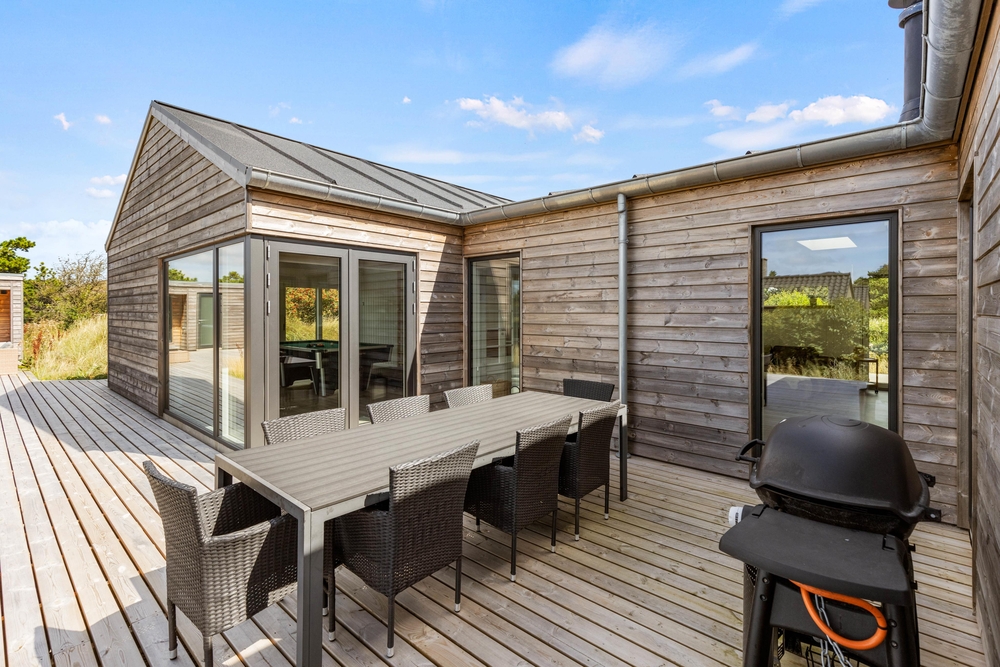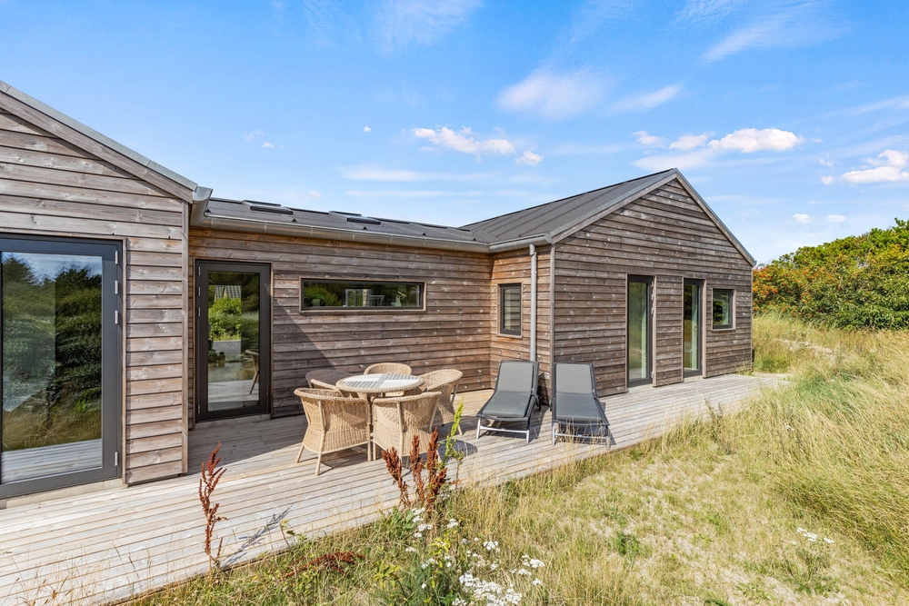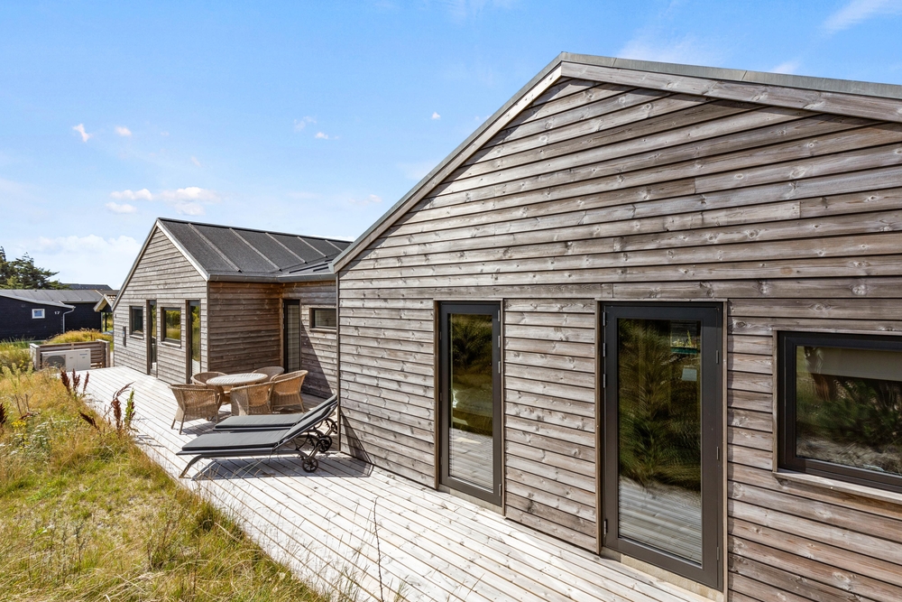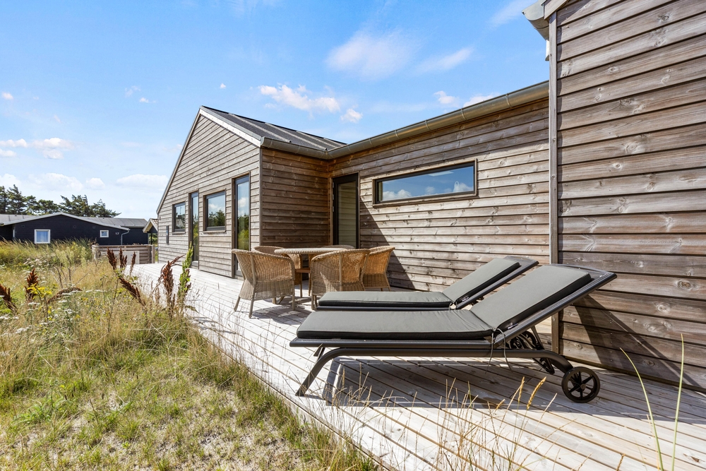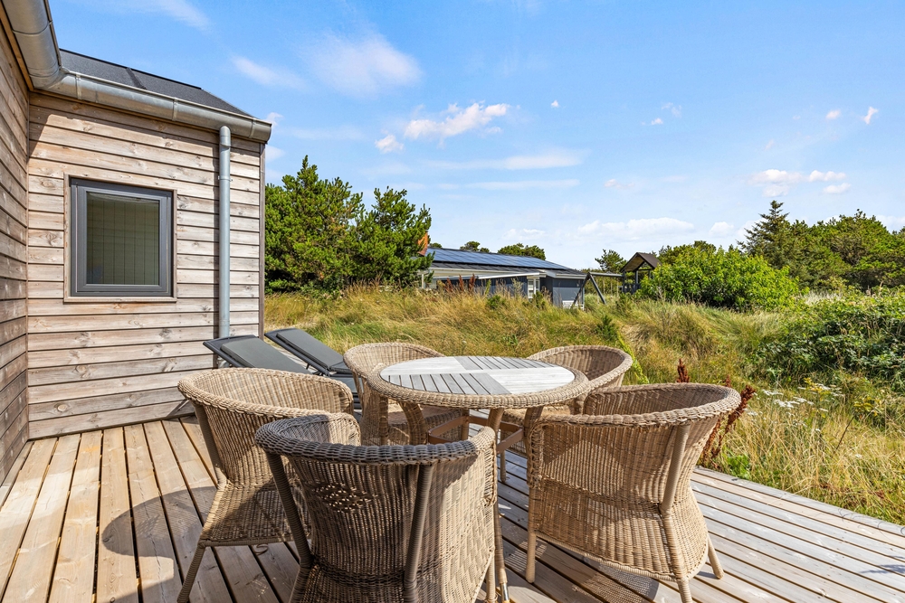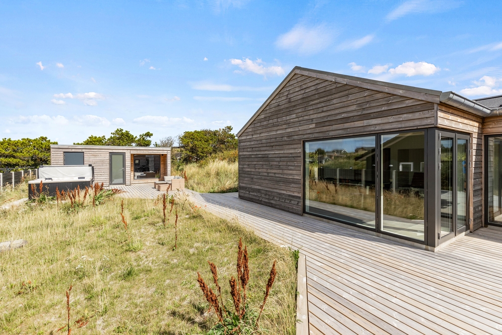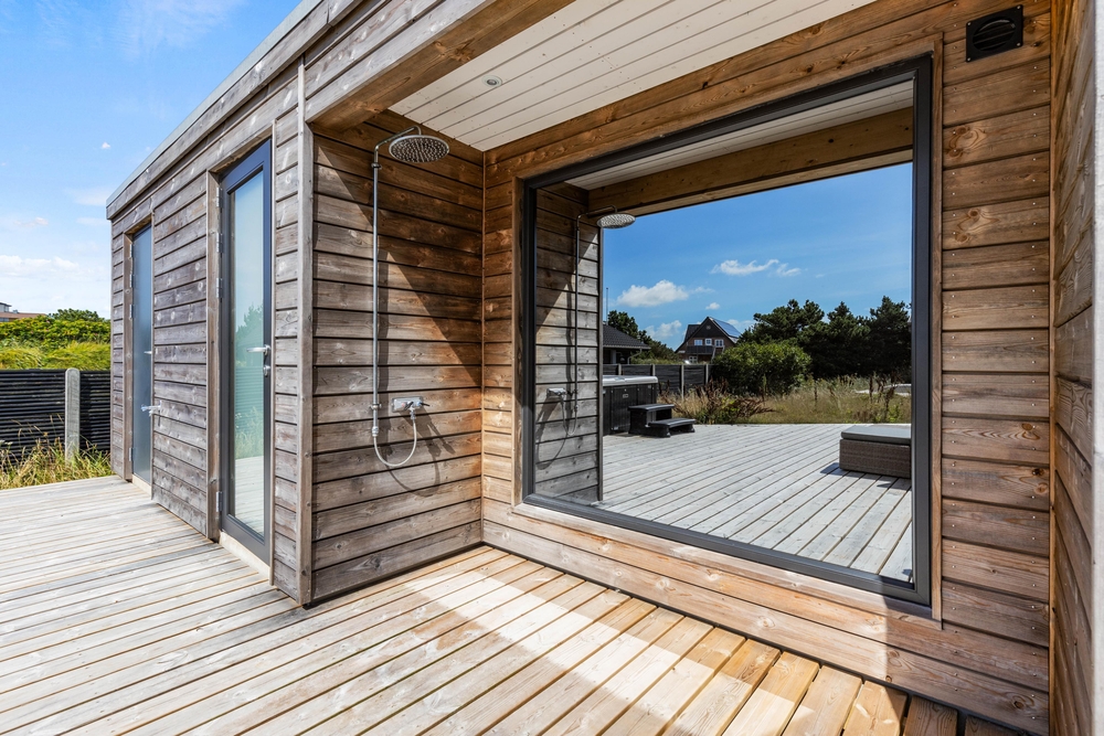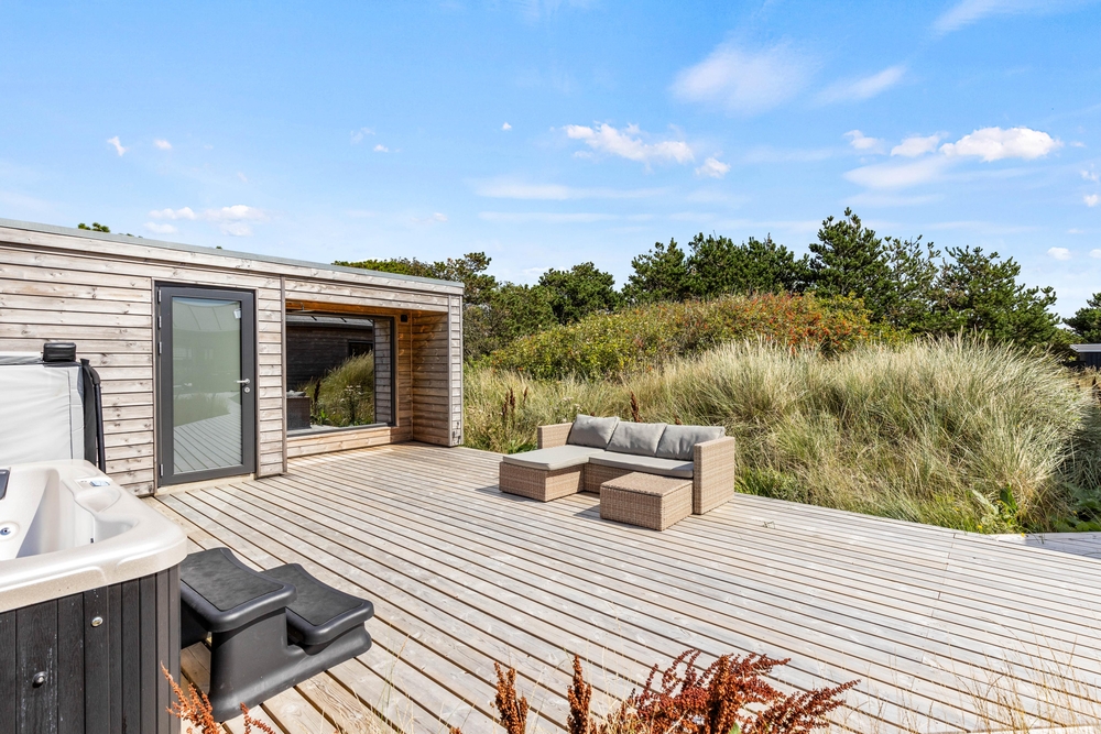 På den smukke terrasse har I god plads til at nyde de mange solskinstimer. Der er komfortable havemøbler og liggestole til rådighed, så I kan slappe af. Et højdepunkt er udendørs sauna og spa. Gå en kort tur ned til den fantastiske strand ved Vesterhavet, nyd stranden og luften, og gå tilbage igennem byen med sine mange hyggelige butikker.