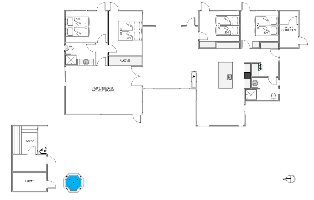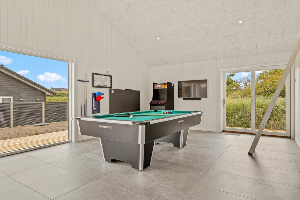 De konkurrencemindede kan brænde en masse energi i det store aktivitetsrum, som rummer billard, bordtennis samt en ægte Arcade spillemaskine. Og dem, der gerne vil nyde at se på, kan blot slappe af i den skønne alkove, der er placeret i dette flotte aktivitetsrum.