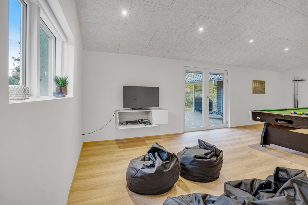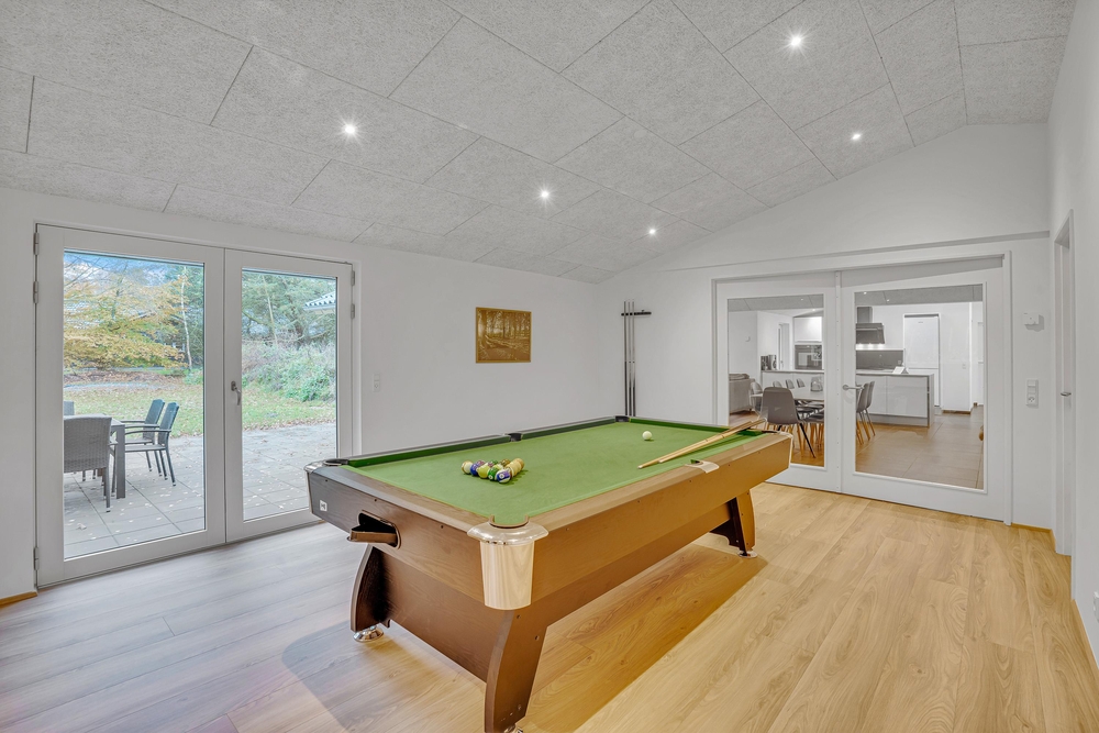 Sommerhuset på Nørballevej 18 byder også på et billardbord, hvor I kan finde familiens billardmester. Efter en billardturnering kan I finde badetøjet frem og hoppe i sommerhusets udendørsspa. Her kan I bare læne jer tilbage og nyde de masserende bobler og ikke mindst de naturskønne omgivelser, som omgiver sommerhuset.