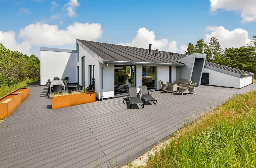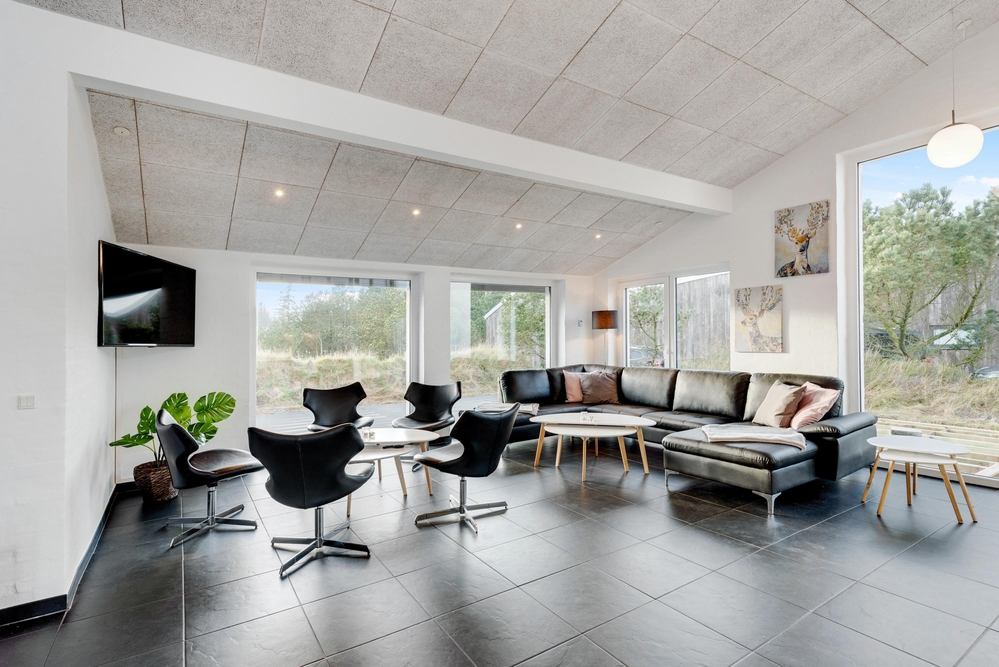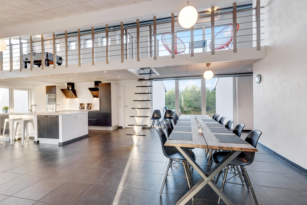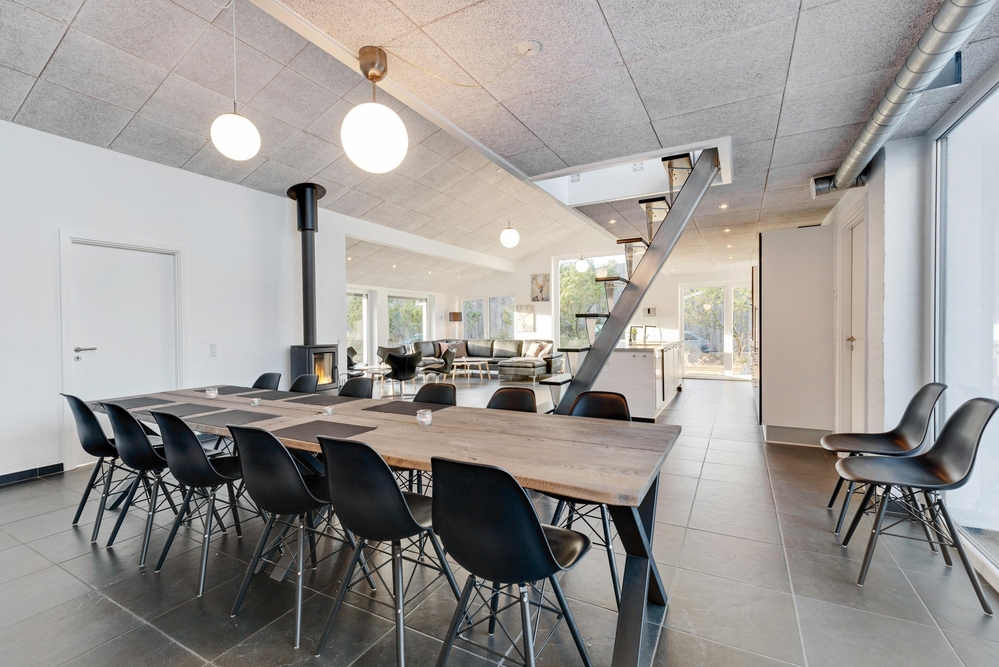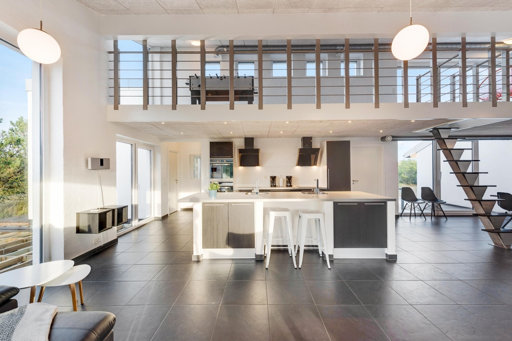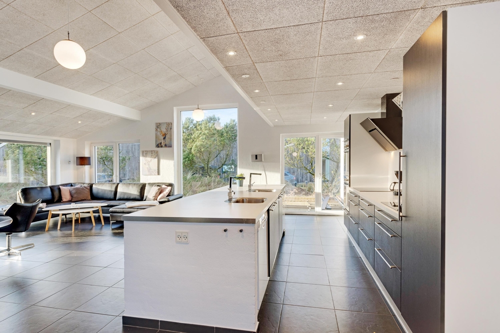 Du må nok vænne dig til tanken om en ferie, du ikke vil hjem fra, for de store åbne rum og de mange vinduer giver en hel speciel følelse af velvære, når lyset på alle tider af dagen falder ind i køkkenalrum og stue og giver dig fornemmelsen af at være midt i naturen ? selv indenfor.