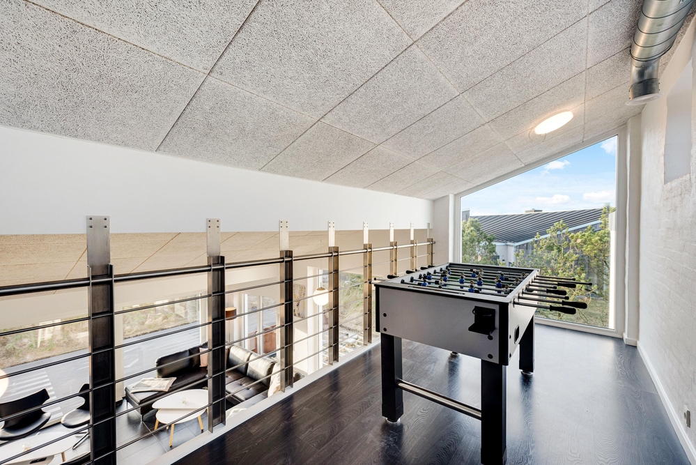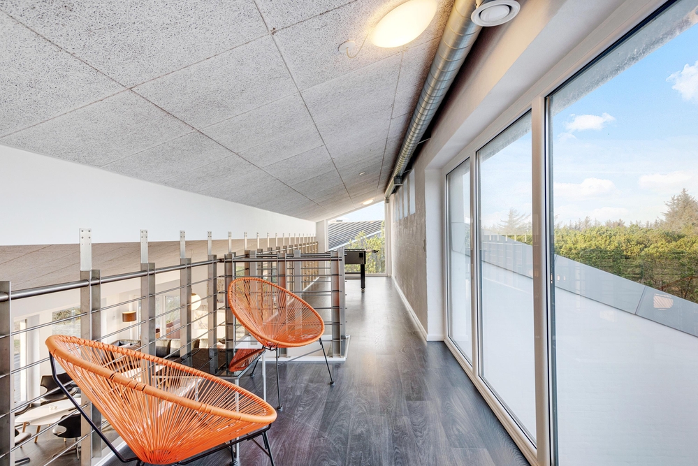 Når I er blevet godt gennemvarmet og nakkemusklerne har løsnet sig, kan det varmt anbefales at tage dagens ?pre-dinner-drink? med op på svalegangen, hvor I kan nyde udsigten over naturen i fulde drag ? eller udfordre hinanden med en omgang bordfodbold.