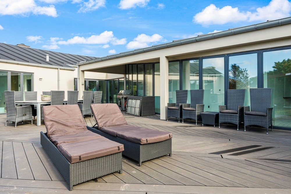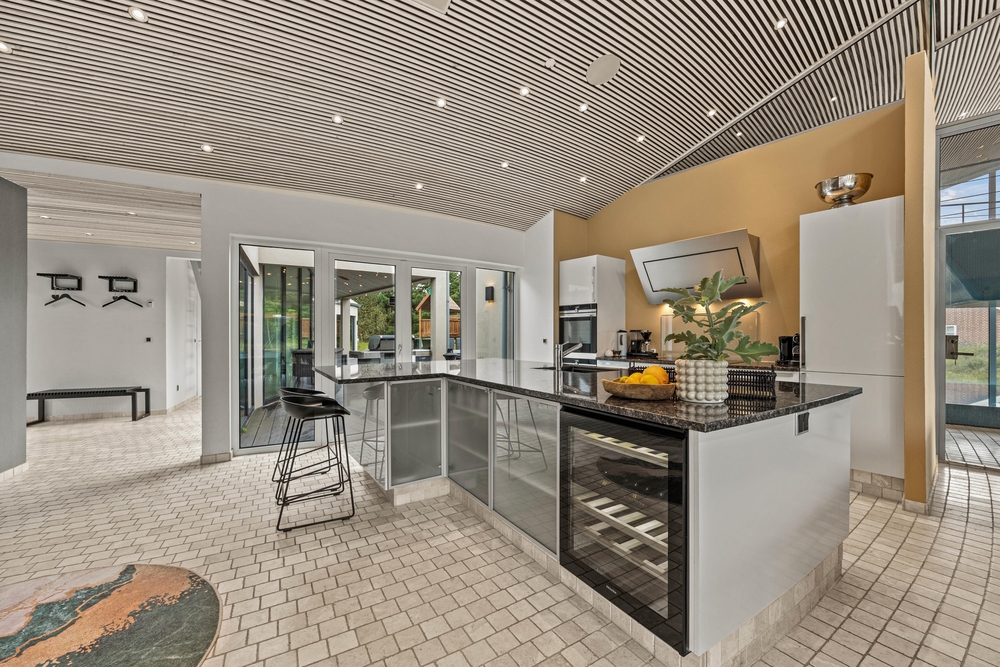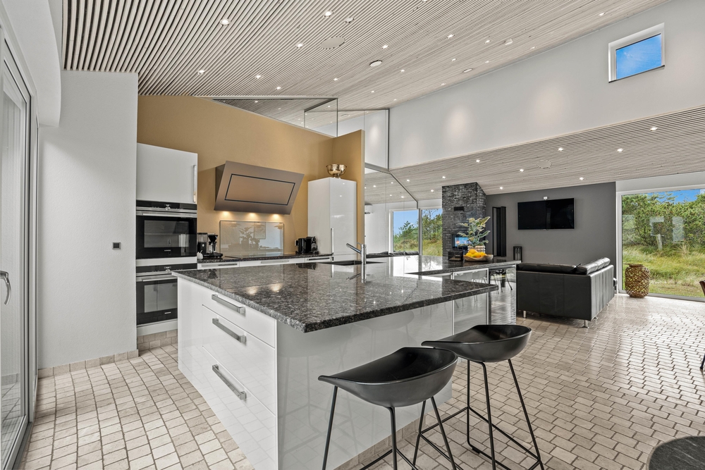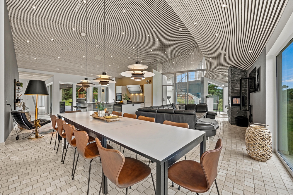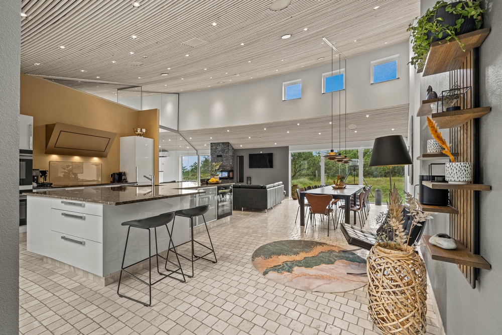 Overalt i luksussommerhuset vil I opleve en moderne indretning, og I vil hurtigt føle jer godt tilpas her. Jeres samlingspunkt i feriehuset vil uden tvivl blive alrummet, hvor køkken, stue og spiseplads er samlet i ét rum, og hvor rammerne altså virkelig er sat for hyggelige feriestunder for hele ferieflokken.